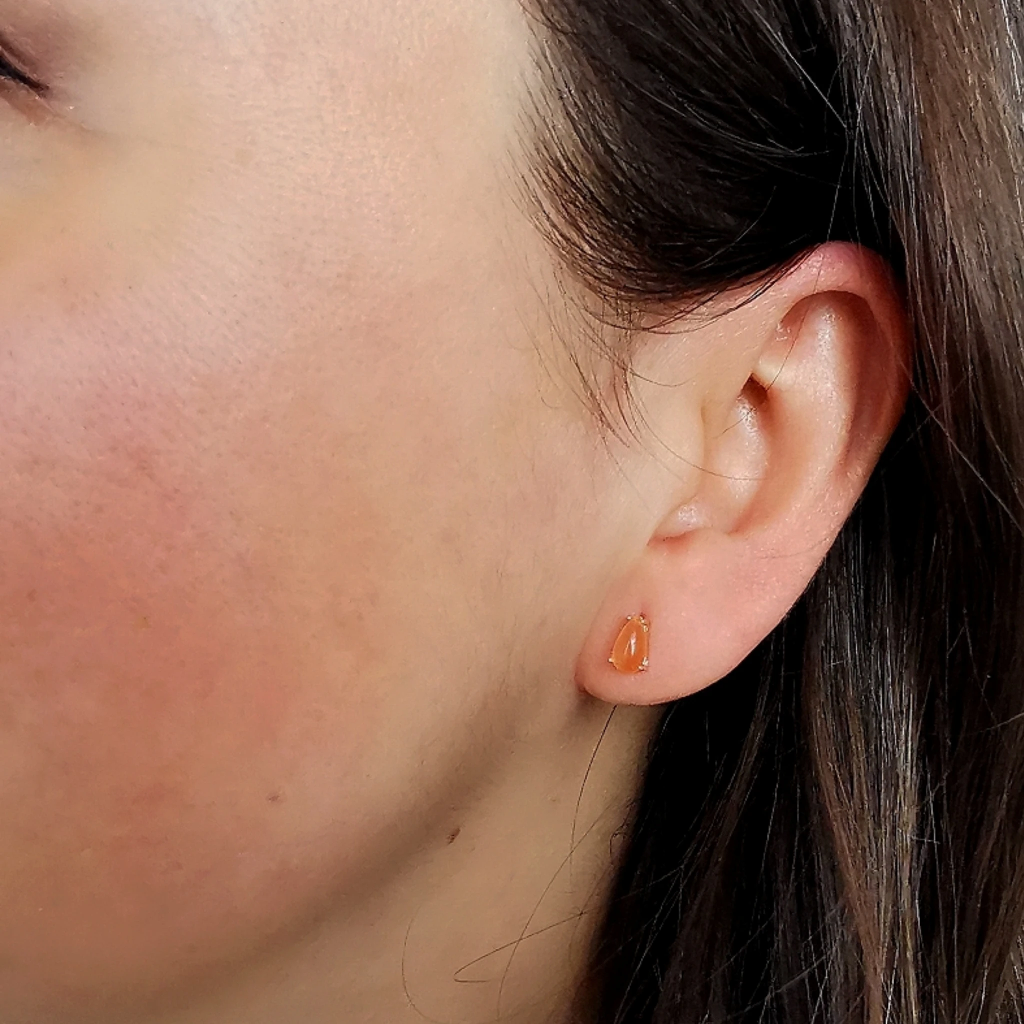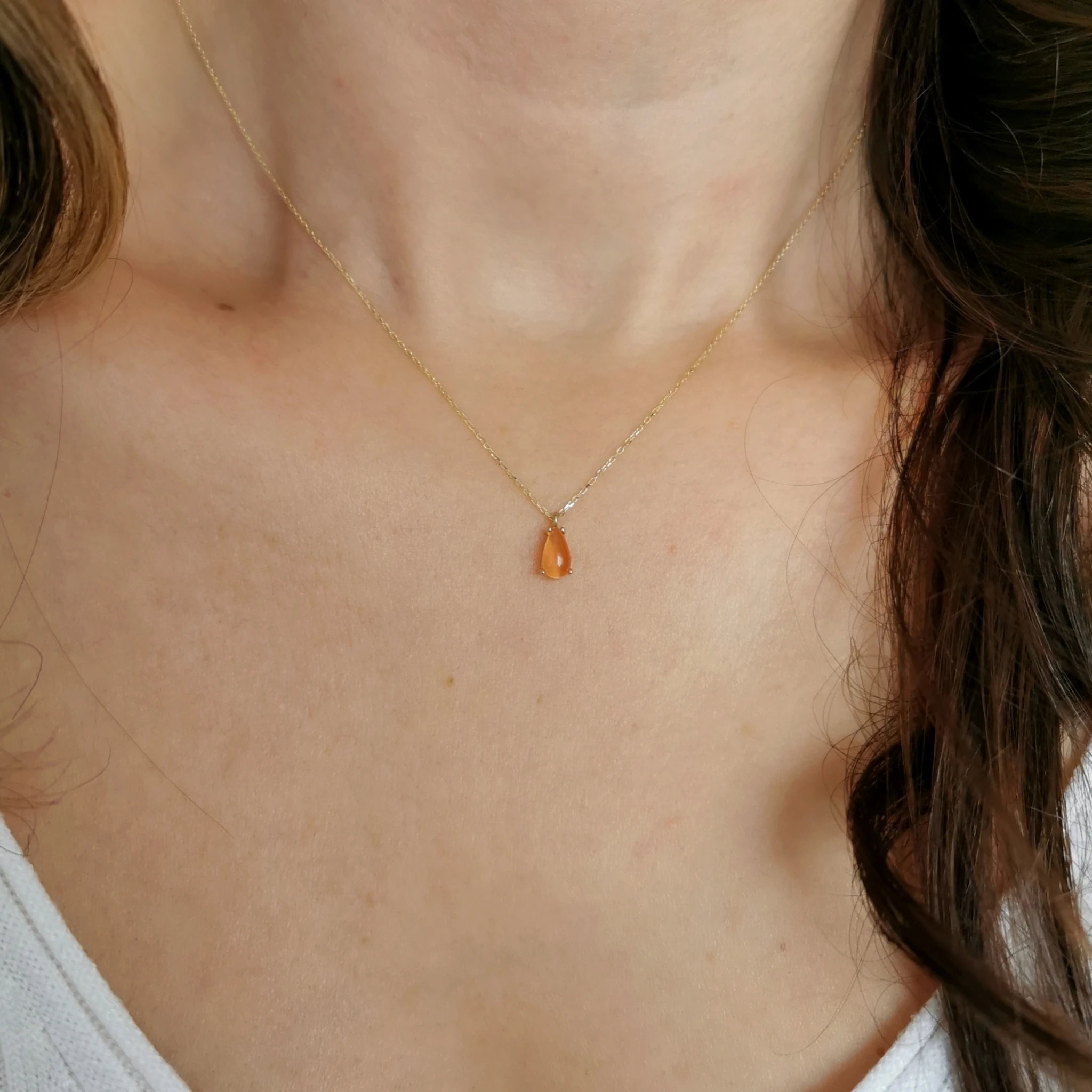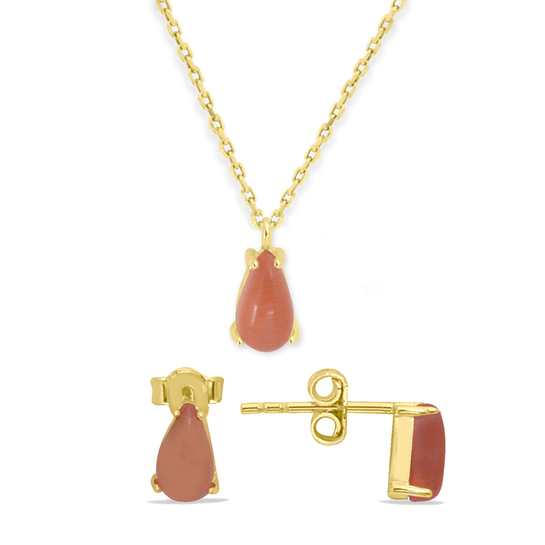 14 Ayar 2.55 gram ağırlığında minimal tasarımıyla tüm gün severek kullanacağınız turuncu taşlı altın su damlası kolye küpe takım.