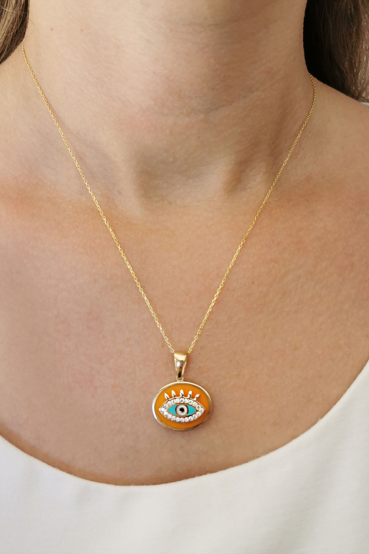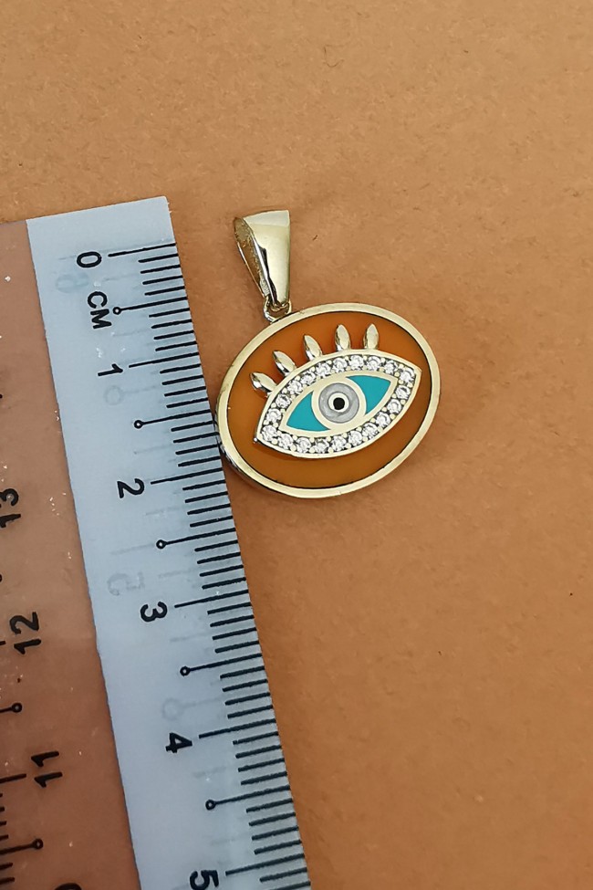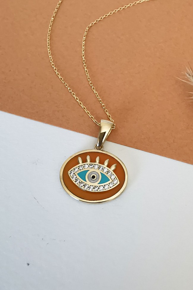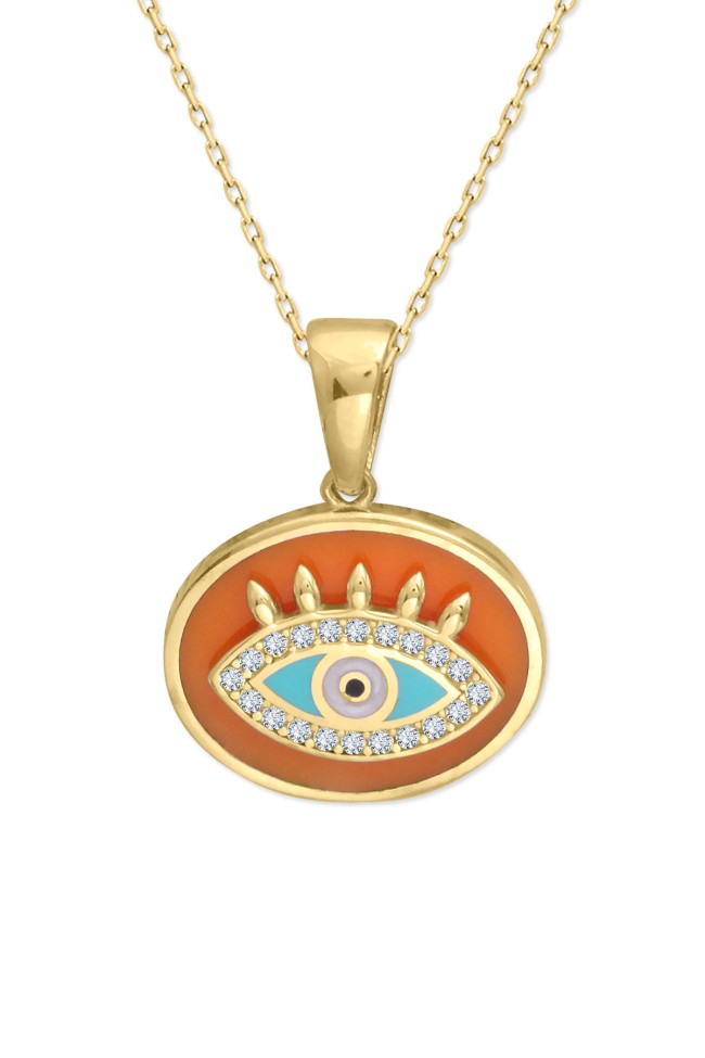 6.60 Gr. 2.5 Cm boyutunda turuncu mineli oval model 14 ayar altın kolye.