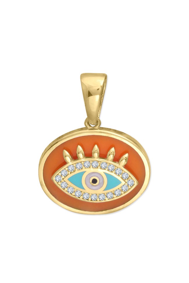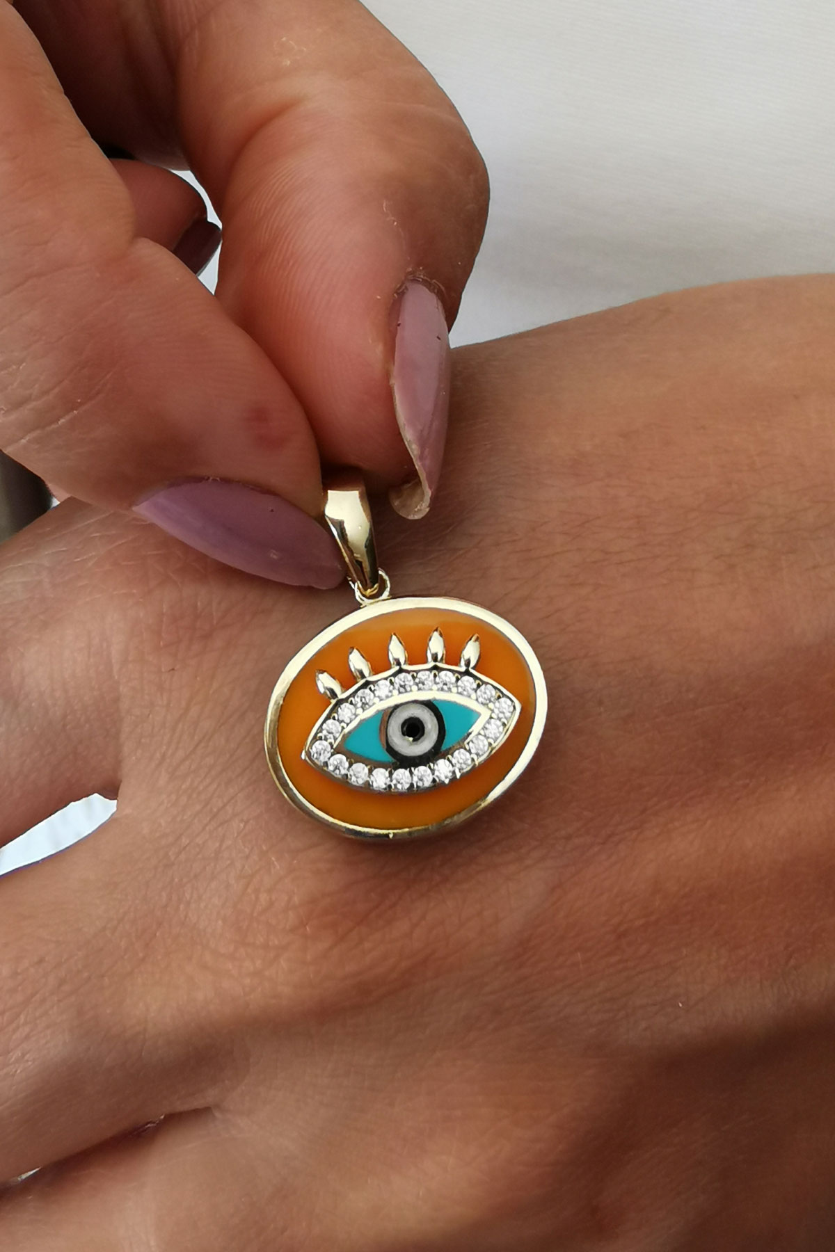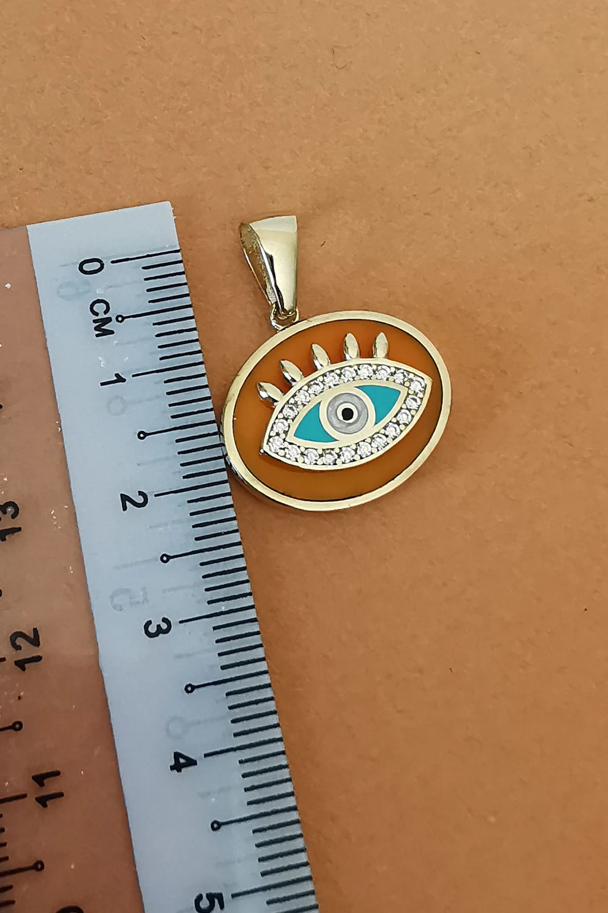 5.30 Gr. 2.5 Cm boyutunda turuncu mineli oval model 14 ayar altın kolye ucu.