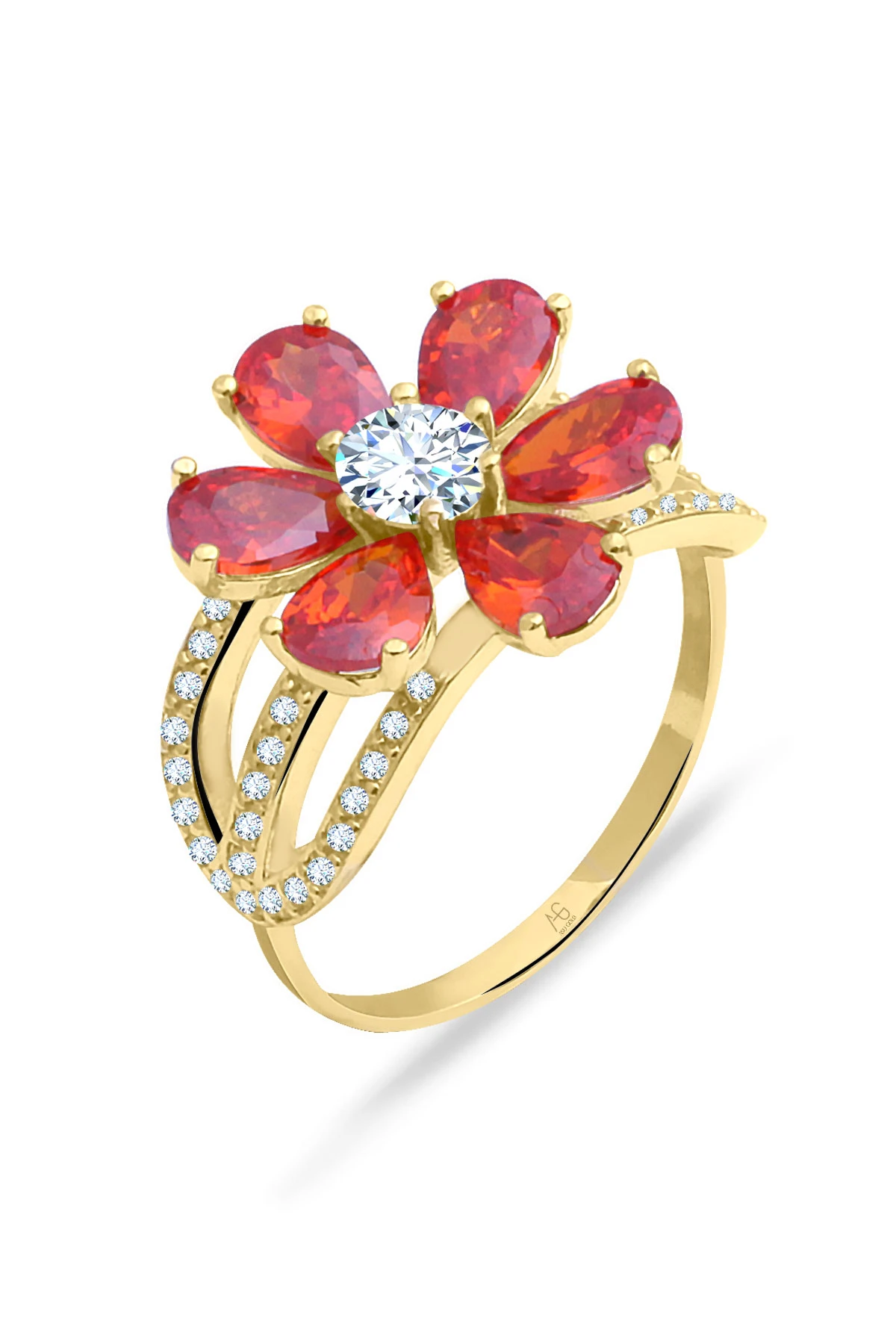 Kokusuyla büyüleyen saygı ve sevginin temsili, hayatta değer verdiğiniz sevdiklerinize verebileceğiniz anlam dolu 14 ayar altın turuncu taşlı nergis çiçeği yüzük.