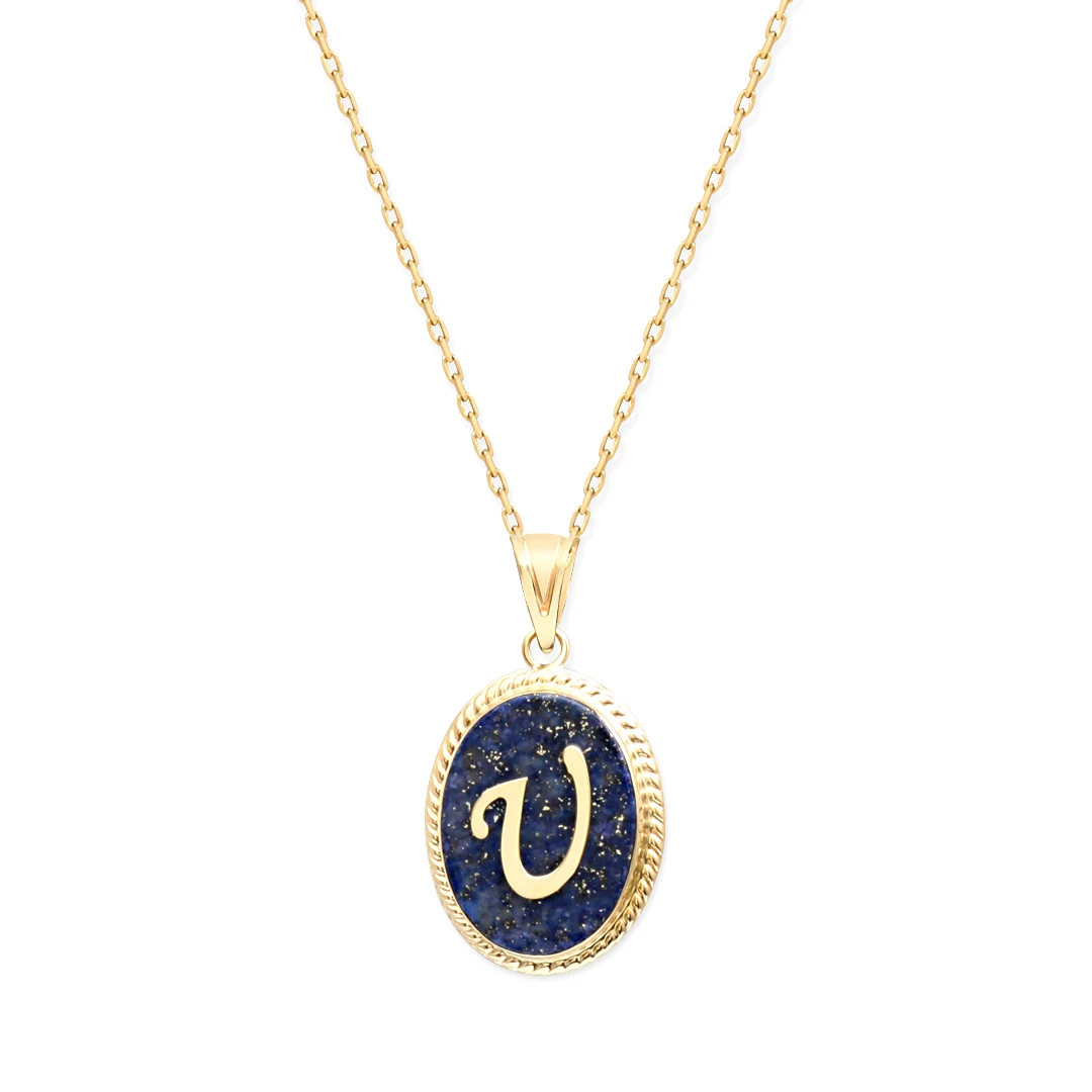 Lapis, lazunili diğer adı lacivert taşı üzerinde harfli trend sezon modası U harfi kolyeyi günlük olarak takabilirsiniz. Lapis taşı bir çeşit bakır cevheridir, kristal yapısı birbirine dik ama farklı uzunlukta eksenlere sahiptir. İçerisinde gece gökyüzüne dağılmış yıldızlar gibi altın rengi prit parçaları bulunur, evrenin gücünü ve enerjisini alıp beynimize yönlendirir. *Ürünleriniz özel hediye kutusunda garanti belgesi ve ücretsiz sigortalı kargoyla gönderilmektedir, güvenle satın alabilirsiniz