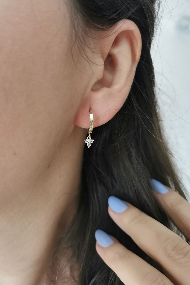 Minimal tasarımları sevenlere özel üç taşlı model günlük olarak kullanıma uygun 14 ayar 2.20 gr ağırlığında altın klipsli küpe.