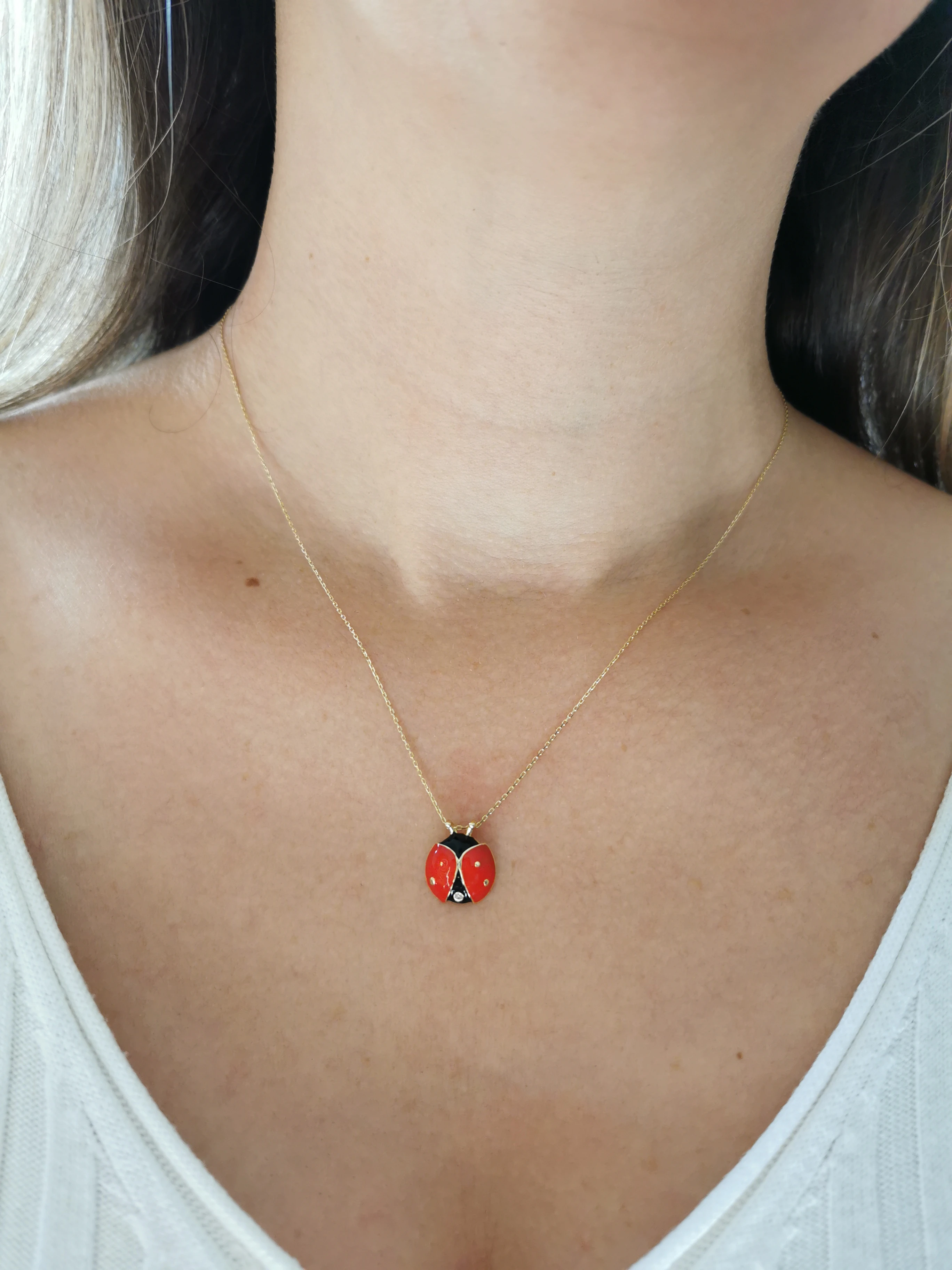 2.40 Gram Ağırlığında Kanatlı Uğur Böceği Tasarımlı Günlük Kullanıma Uygun, Severek Kullanabileceğiniz Sevimli Tasarım 14 Ayar Altın Kolye.