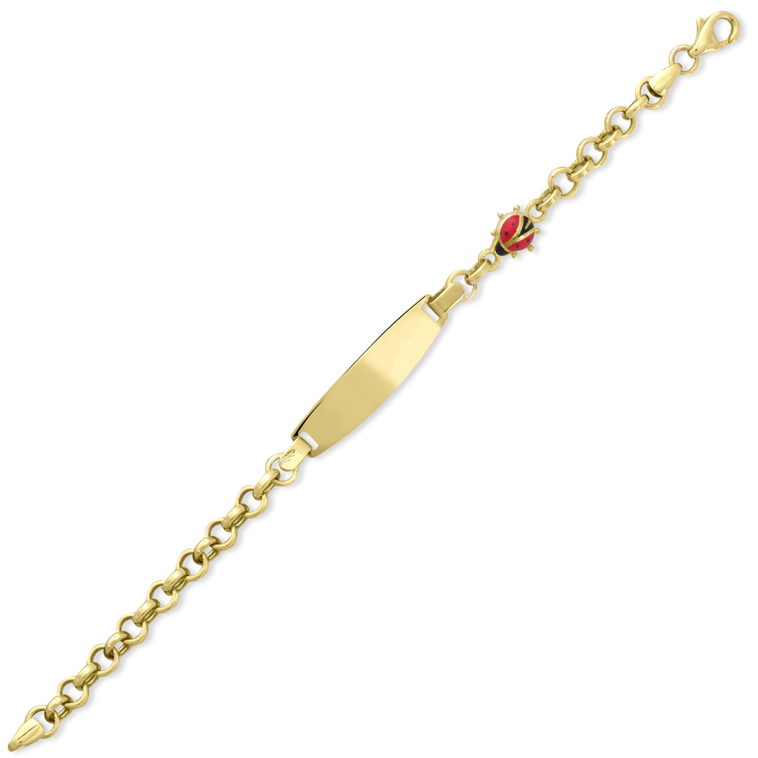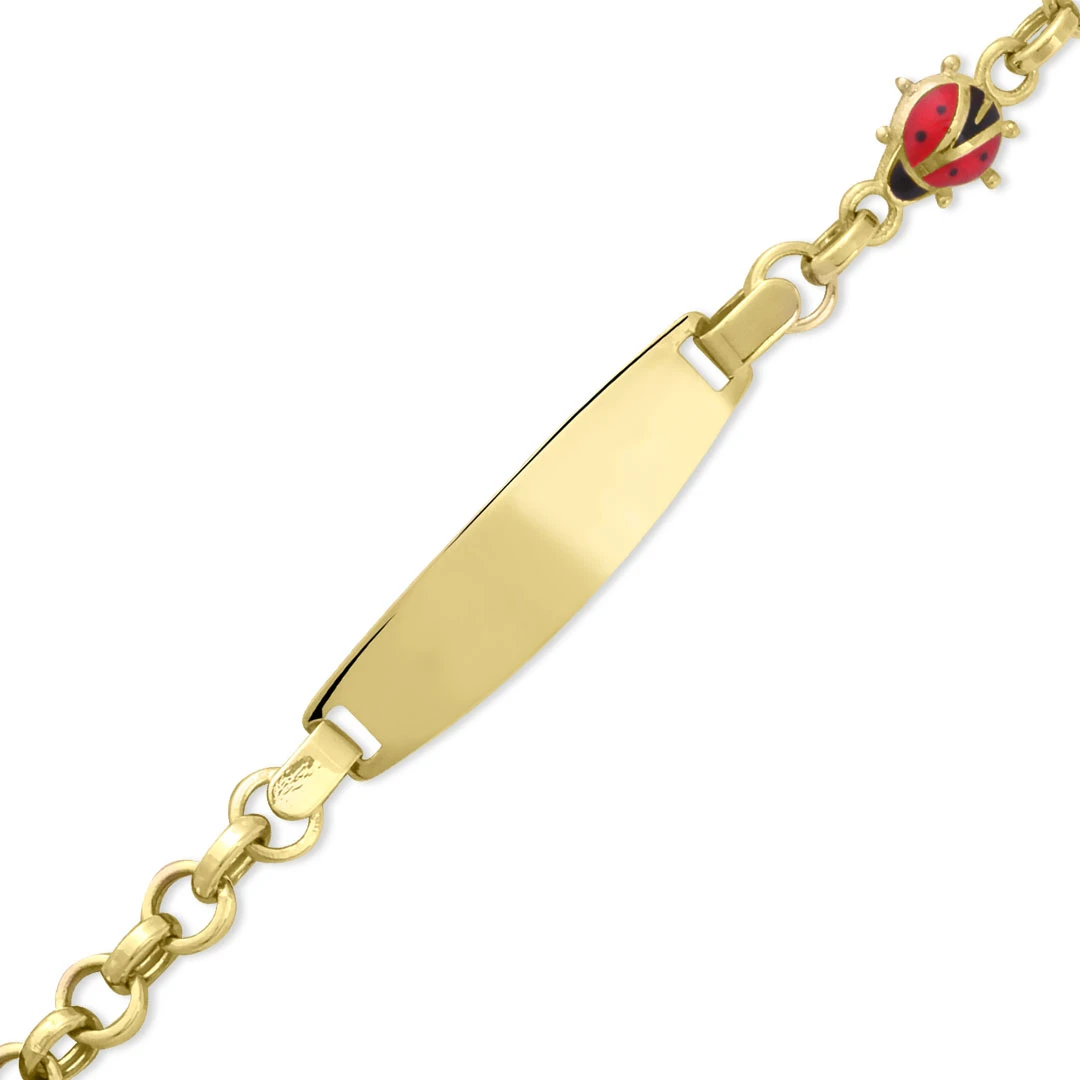 13.5 Cm boyunda günlük olarak da kullanıma uygun sağlam doc halka zincir detaylı 14 ayar 3.50 gr ağırlığında altın uğur böcekli çocuk künyesi.