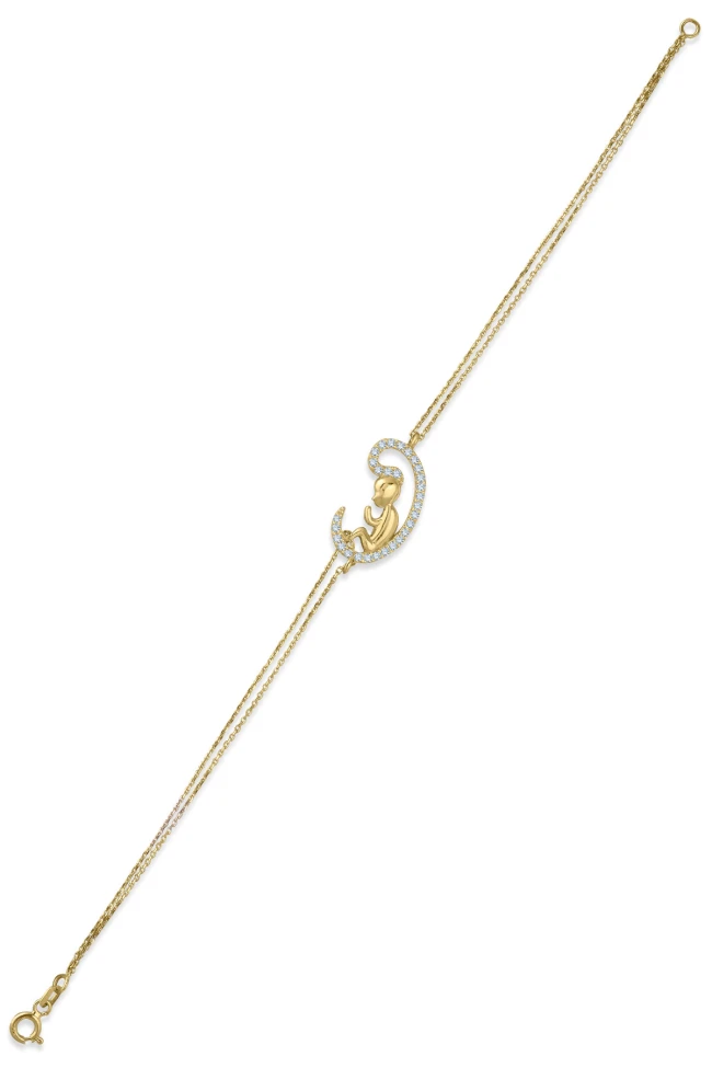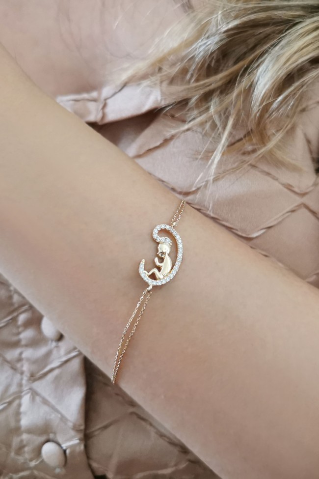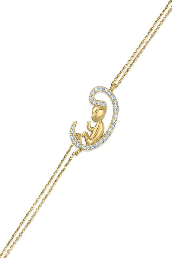 Anlam dolu modele sahip  2.90 gr ağırlığında 18 cm boyunda vav (varoluşun simgesi) içerisinde cenin modeliyle sevdiklerinize doğum hediyesi olarak tercih edebileceğiniz 14 ayar altın bileklik.