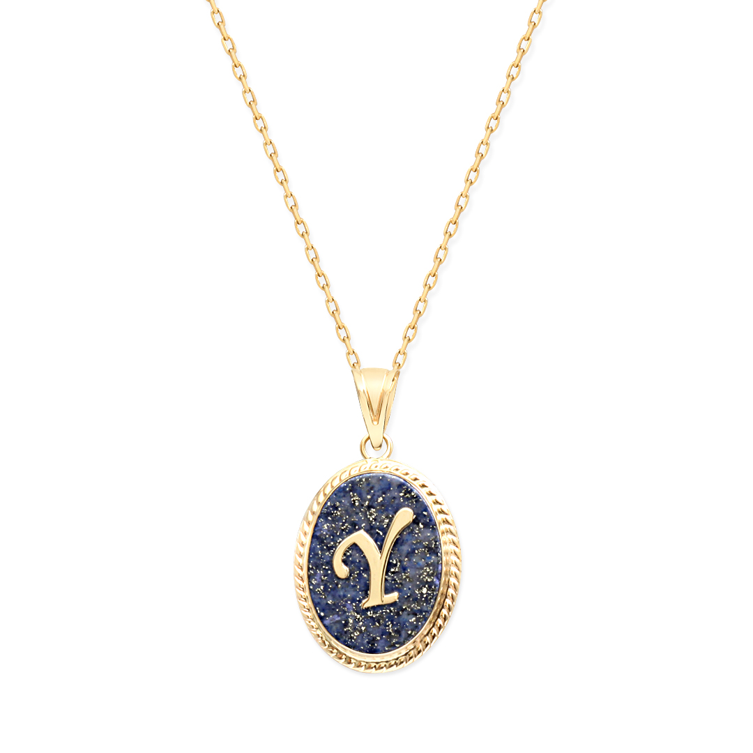 Lapis, lazunili diğer adı lacivert taşı üzerinde harfli trend sezon modası Y harfi kolyeyi günlük olarak takabilirsiniz. Lapis taşı bir çeşit bakır cevheridir, kristal yapısı birbirine dik ama farklı uzunlukta eksenlere sahiptir. İçerisinde gece gökyüzüne dağılmış yıldızlar gibi altın rengi prit parçaları bulunur, evrenin gücünü ve enerjisini alıp beynimize yönlendirir.