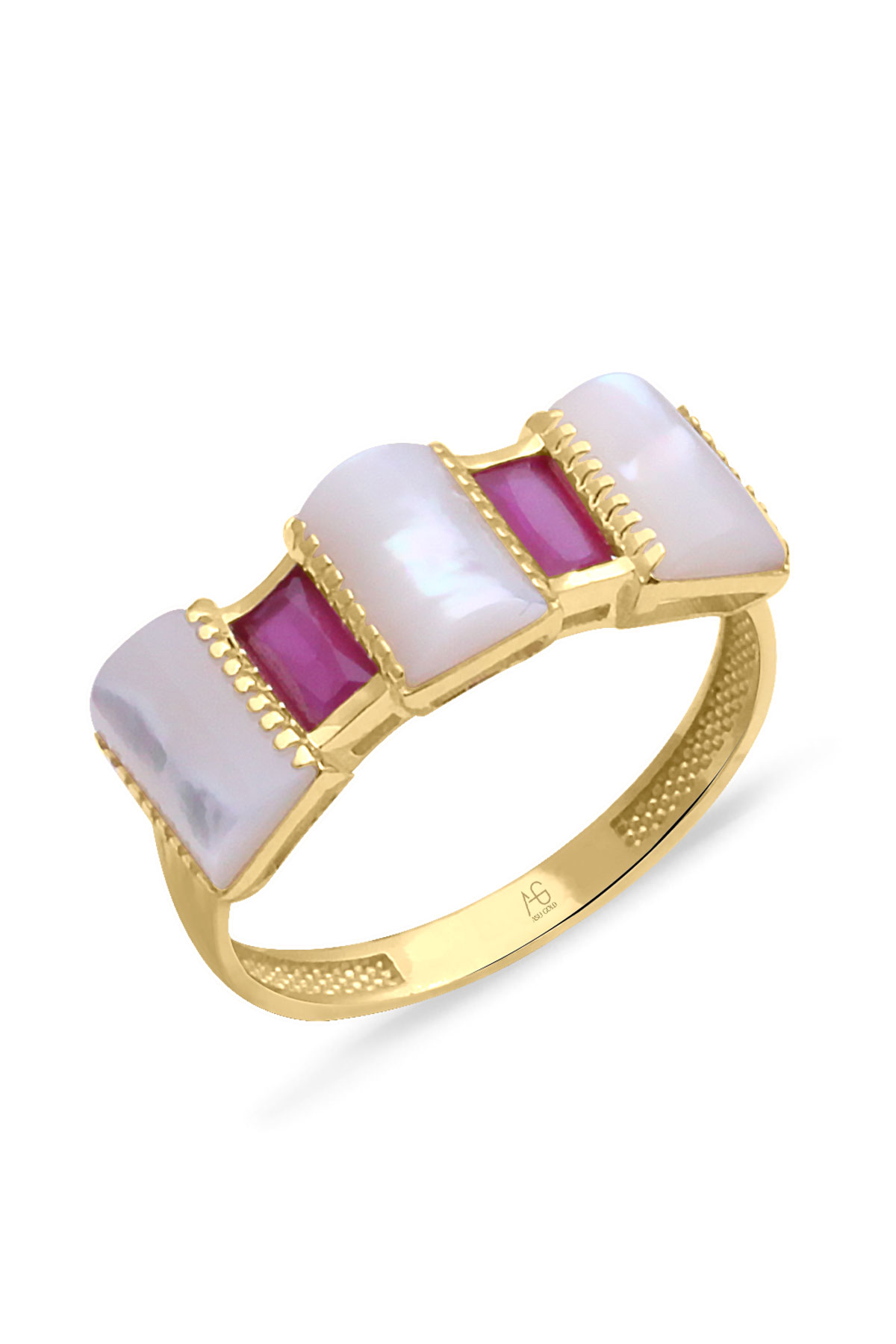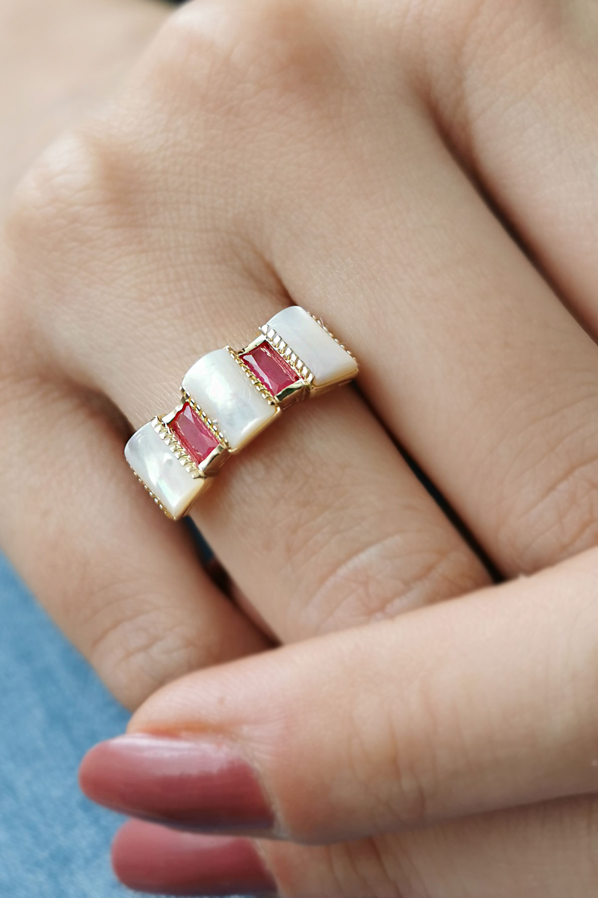 14 ayar sedef ve zirkon yakut taşlarla kombin edilmiş günlük kullanıma uygun parmağınızda stilinize hava katacak 2.30 gram ağırlığında altın yüzük.