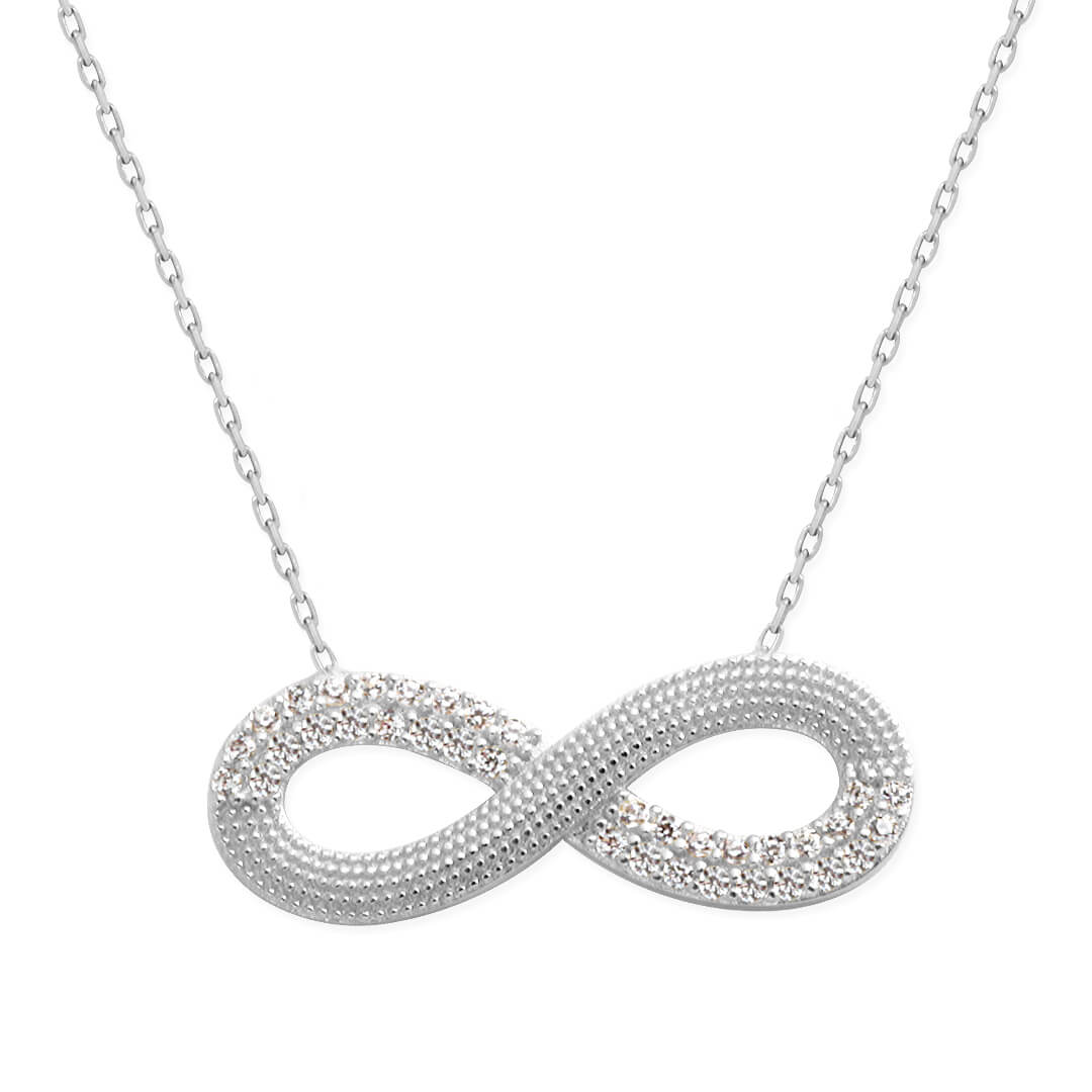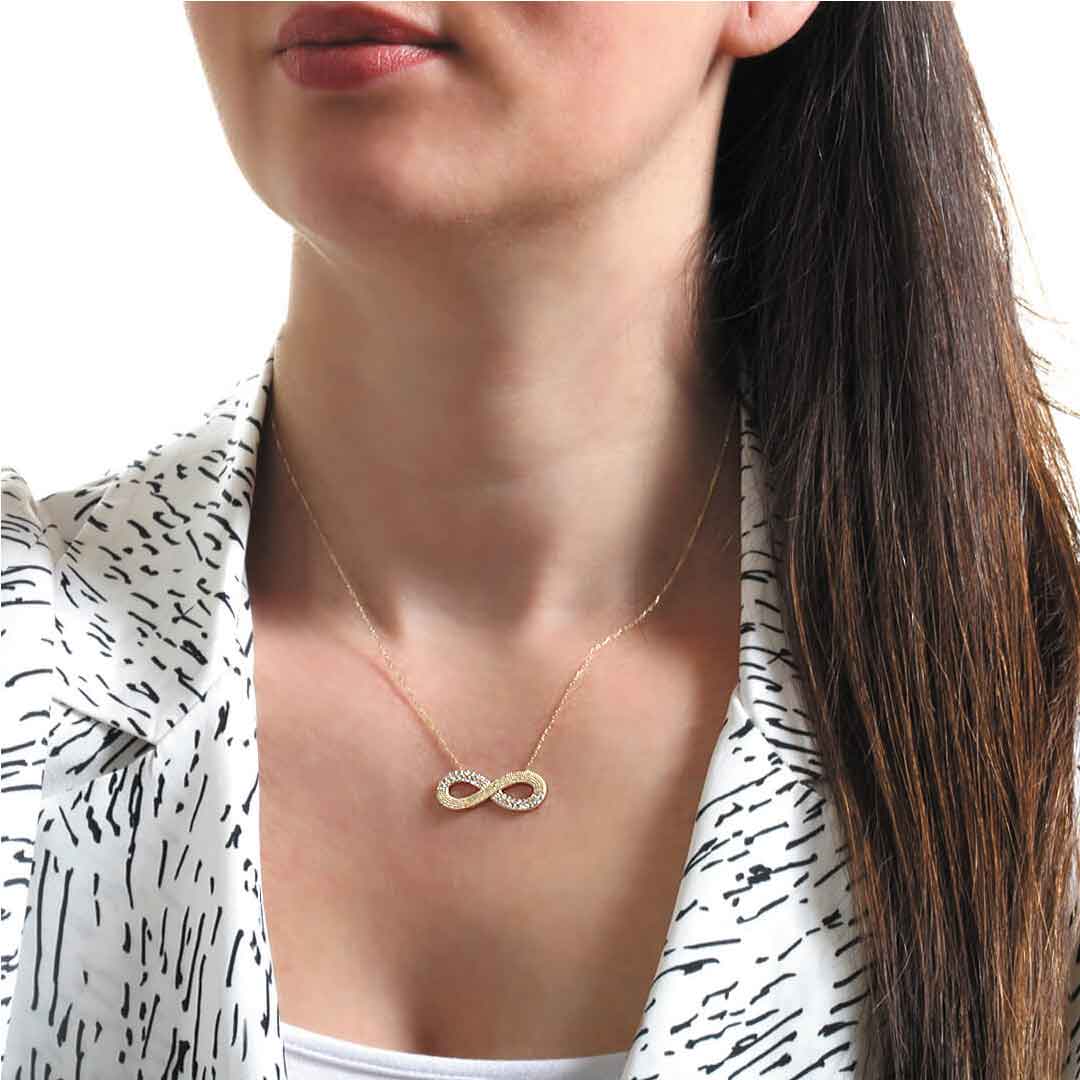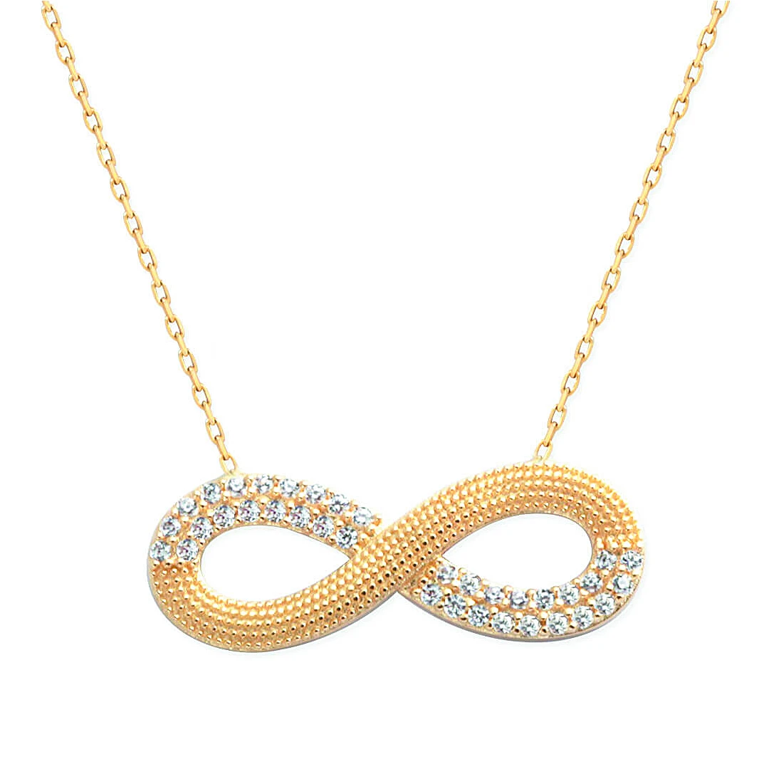Sarı altın yada beyaz altın olarak zevkinize uygun olarak sipariş verebileceğiniz şık ve gösterişli oldukça ışıltılı sonsuzluk kolye.