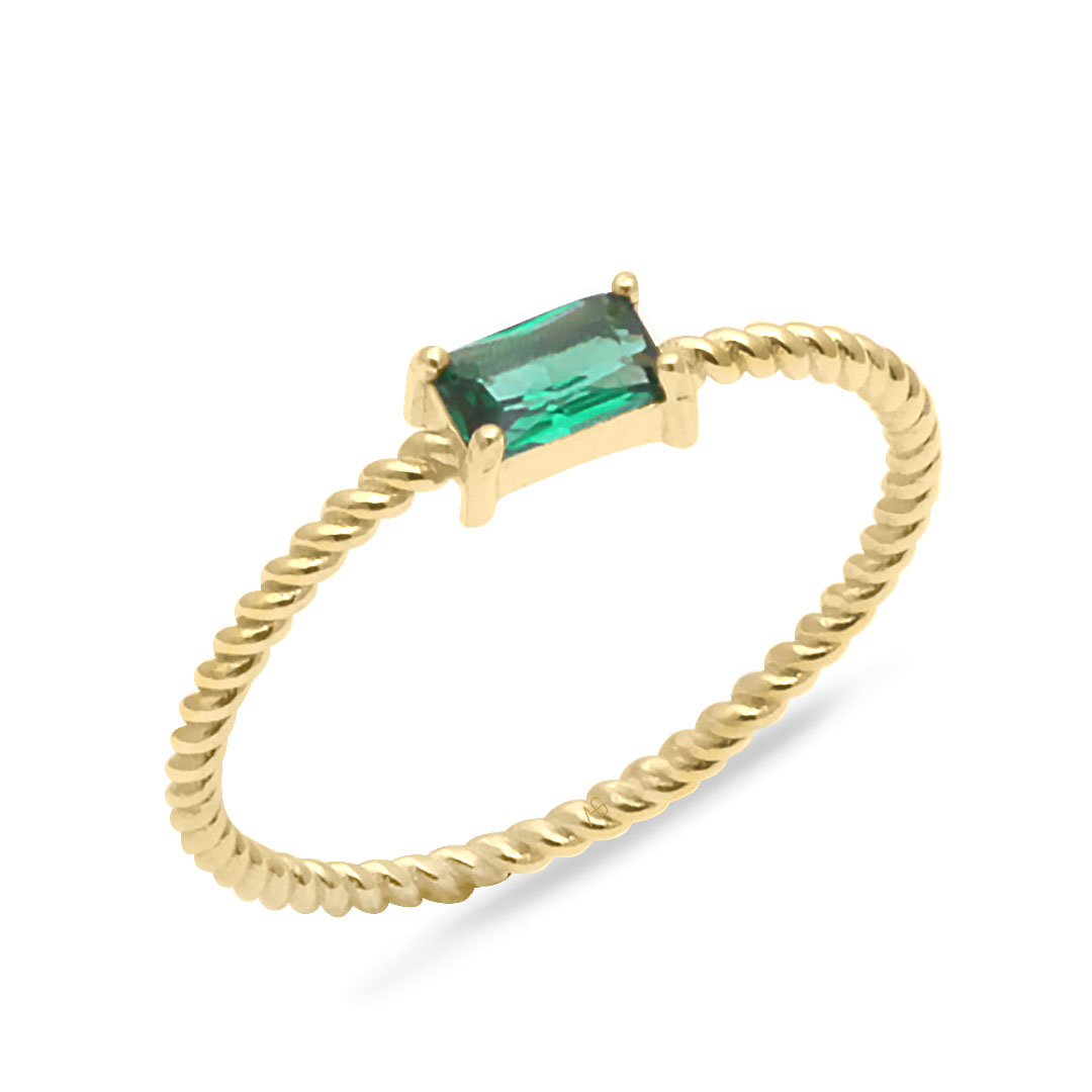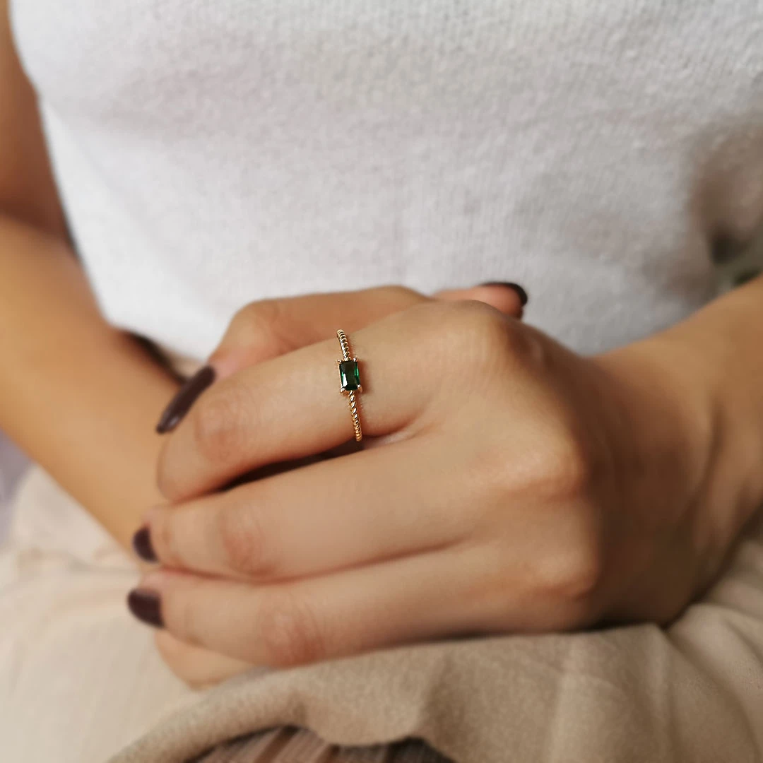 1.10 Gram Ağırlığında Yeşil Baget Taş Detaylı Tasarımıyla Oldukça Şık Ve Spor Bir Duruşa Sahip 14 Ayar Altın Zirkon Taşlı Yüzük.
