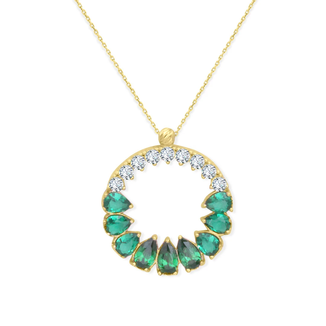 Yeşil/beyaz damla ve yuvarlak zirkon taşların enerji dolu kombinasyonu ile oldukça şık ve havalı bir duruşa sahip altın yuvarlak kolyeyle günlük stiline ışıltı katmaya hazır mısın? Tüm giyim kombinasyonlarınızla muhteşem uyum sağlayacak! Model boyutu 2.00 Cm'dir, 14 ayar altın kendinden zincirli kolyemiz 2.90 gram ağırlığındadır. *Ürünlerimiz faturalıdır güvenle satın alabilirsiniz, özel hediye kutusunda ücretsiz kargo ile gönderilecektir.