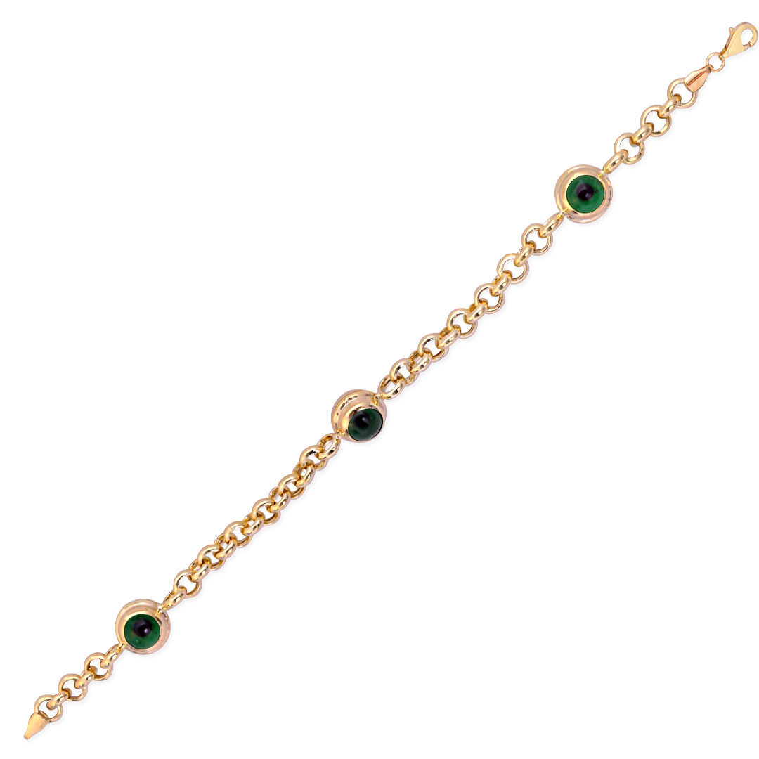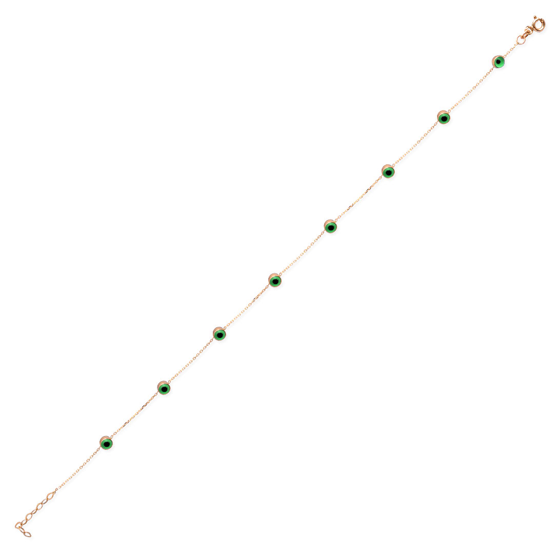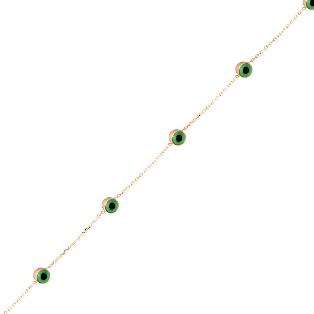 14 ayar altın nazar boncuklu hediyelik yada kendinize günlük olarak takmak için tercih edebileceğiniz tasarım, doc yuvarlak zincir model harika bir halhal. Model boyutu 26 cm olup 2.10 gram ağırlığındadır.
