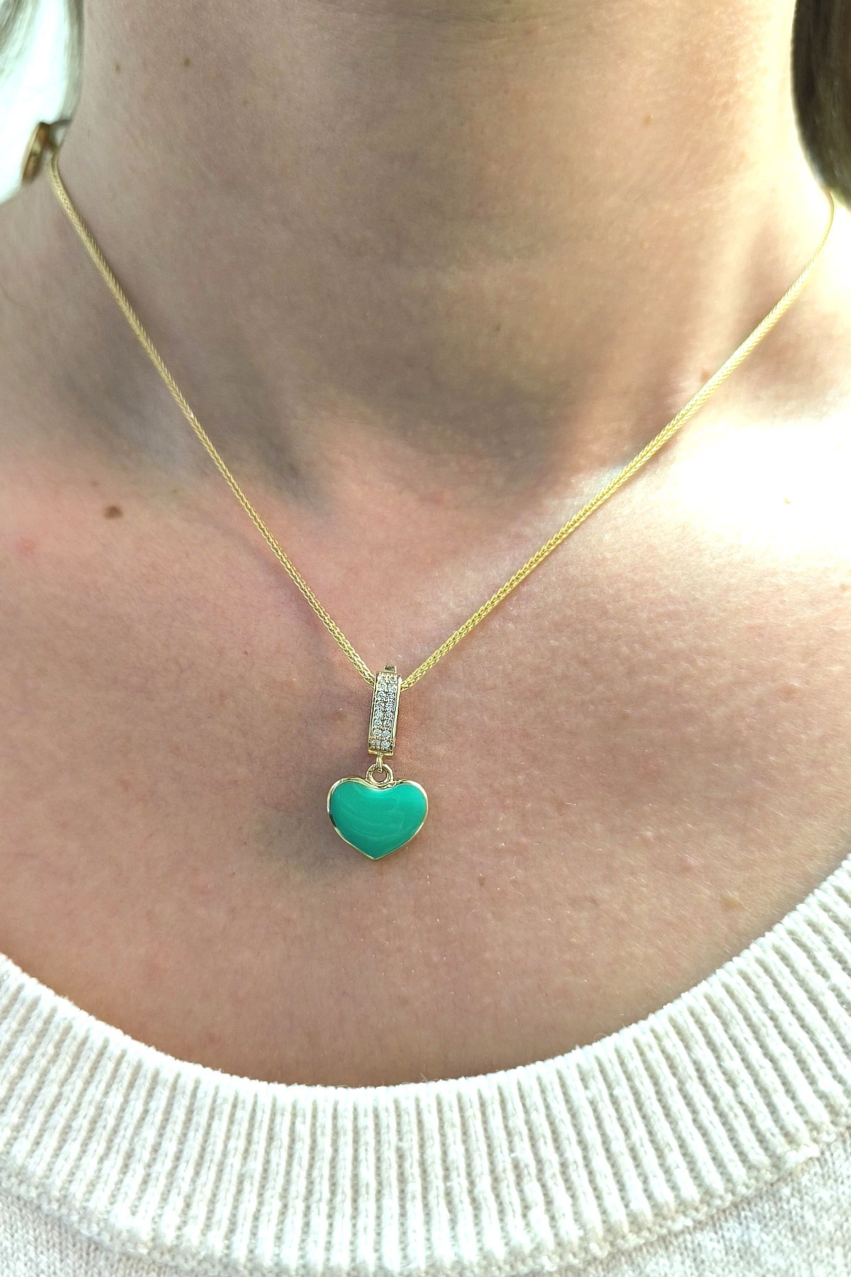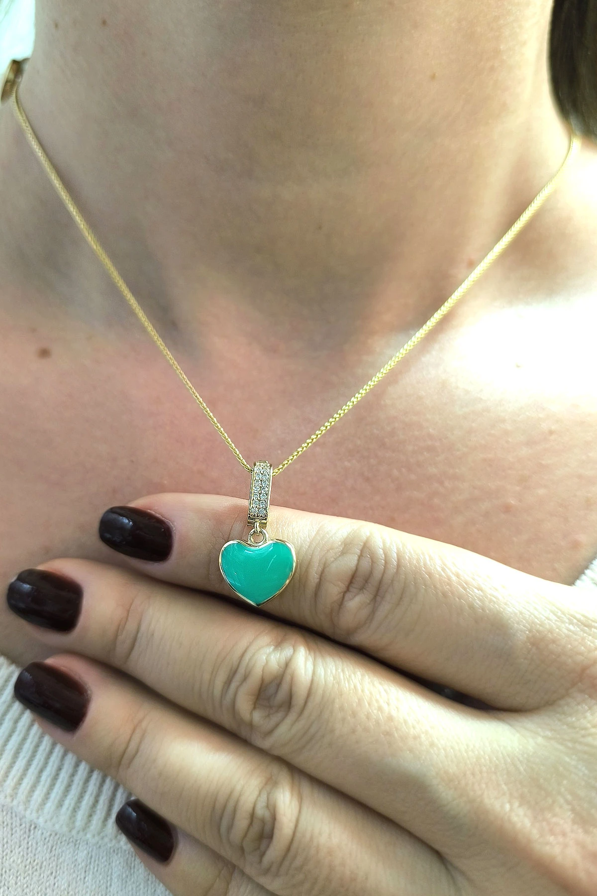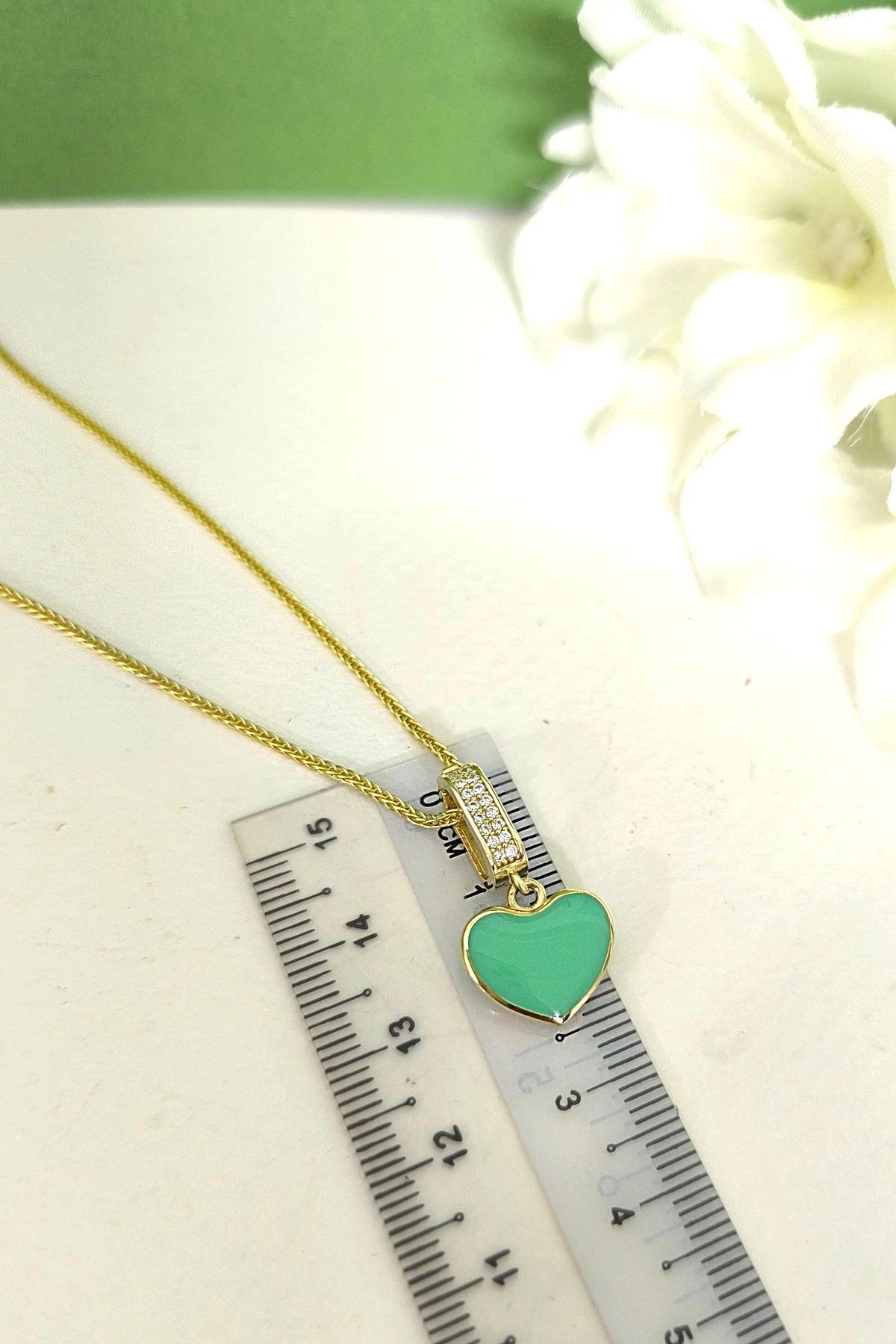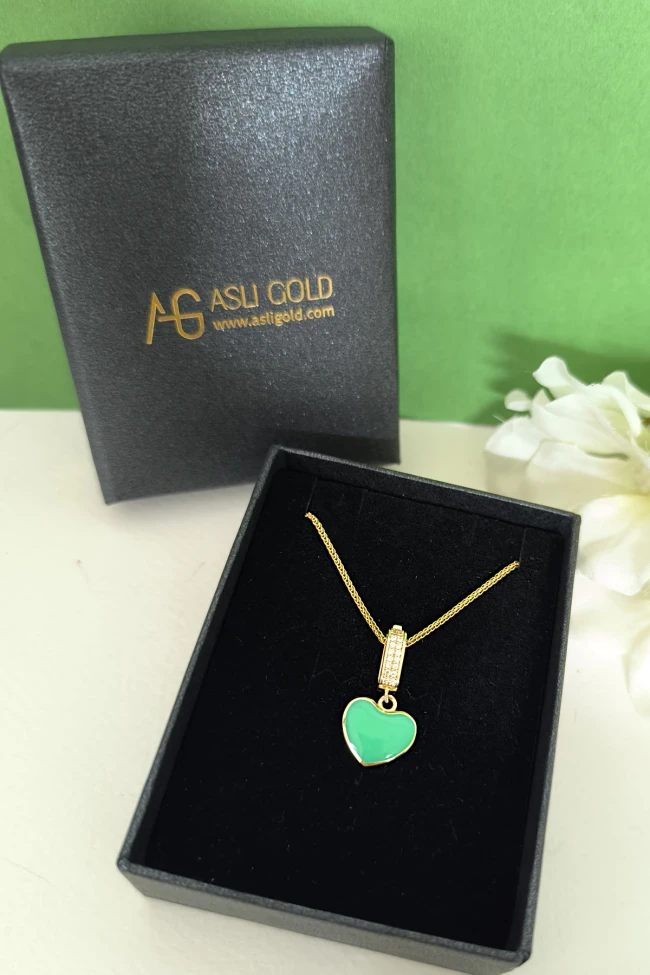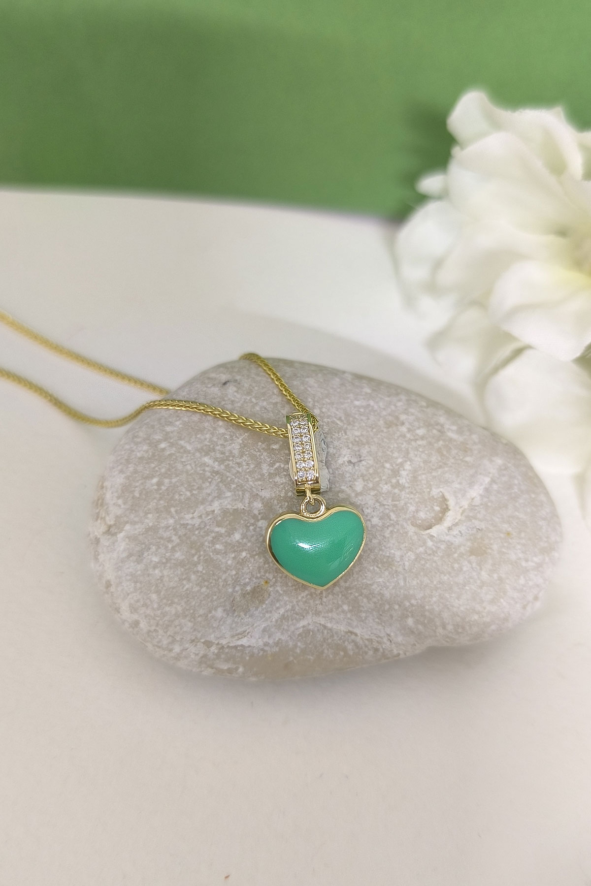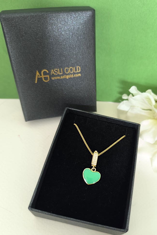 2.5 Cm Boyunda Kendinden 45 Cm Zincirli 14 Ayar Yeşil Mineli Renkli Spor Tasarıma Sahip Işıl Işıl Günlük Kullanıma Uygun 4.00 Gr. Ağırlığında Altın Kalpli Kolye.