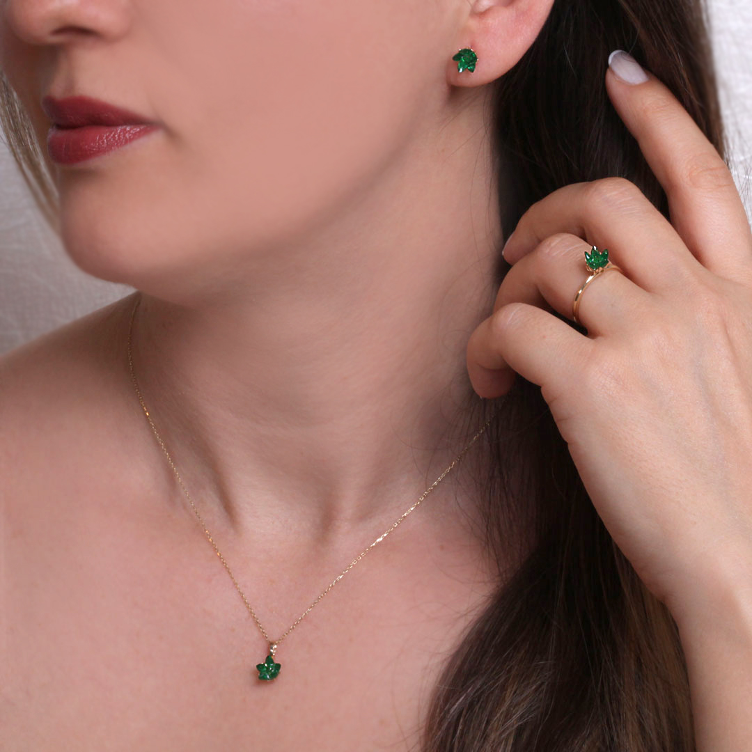 6,00 Gram Ağırlığında El İşçiliğiyle Takılan Markiz Taş Detaylı Minimal Tasarımıyla Oldukça Şık Ve Sade Bir Duruşa Sahip 14 Ayar Altın Yeşil Lotus Çiçeği Yüzük Küpe Kolye Takım. -Ruhsal uyanışın ve temizliğin sembolü olan, eşi benzeri doğada bulunmayan yeşil renkli lotus çiçeği saflığı ve manevi mükemmelliği temsil eder. *Ürünlerimiz faturalıdır güvenle satın alabilirsiniz, özel hediye kutusunda ücretsiz kargo ile gönderilecektir.