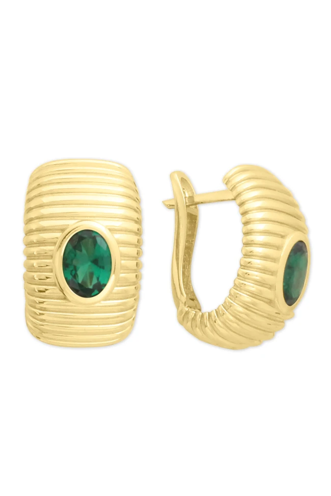 14 Ayar bombeli renkli yeşil taşlı tasarımı ile şık duruşa da sahip günlük kullanıma uygun 6.40 gram ağırlığında altın küpe.