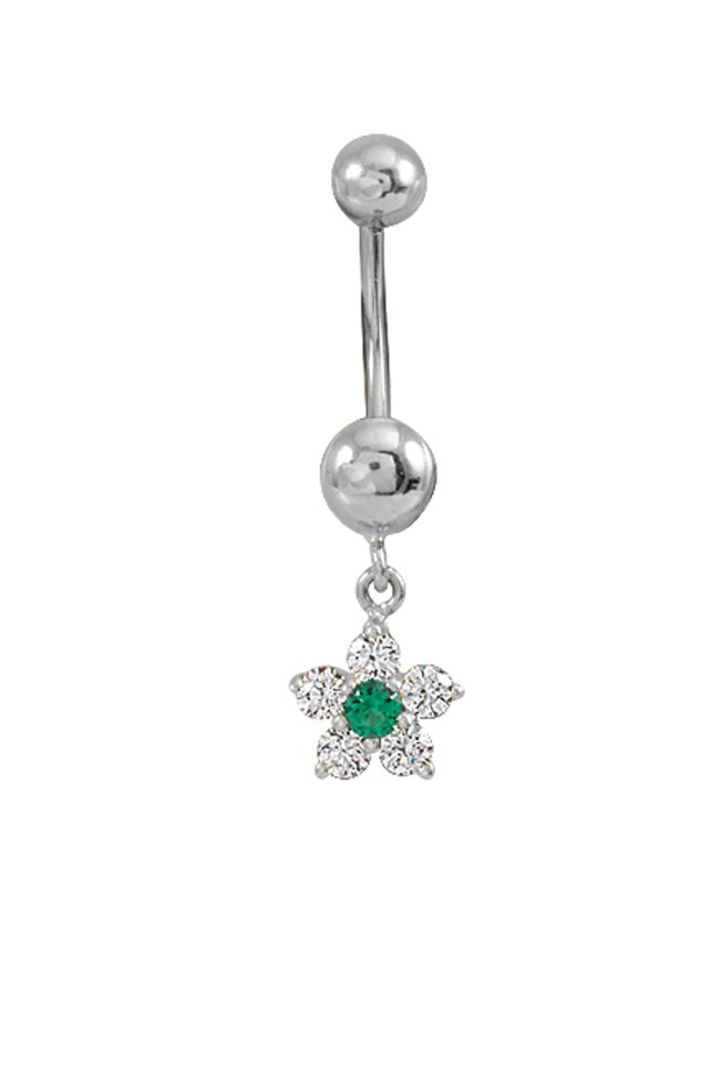 Mini Yeşil Orta Taşlı Parçalı Sallantılı Modeliyle Zarif Bir Duruşa Sahip 14 Ayar Altın Göbek Piercingi.