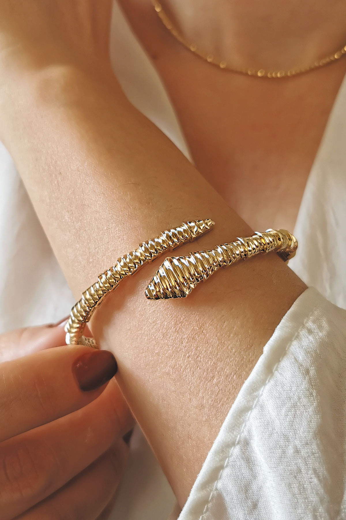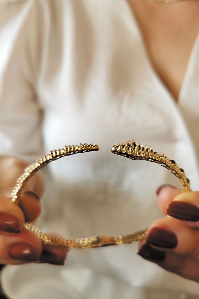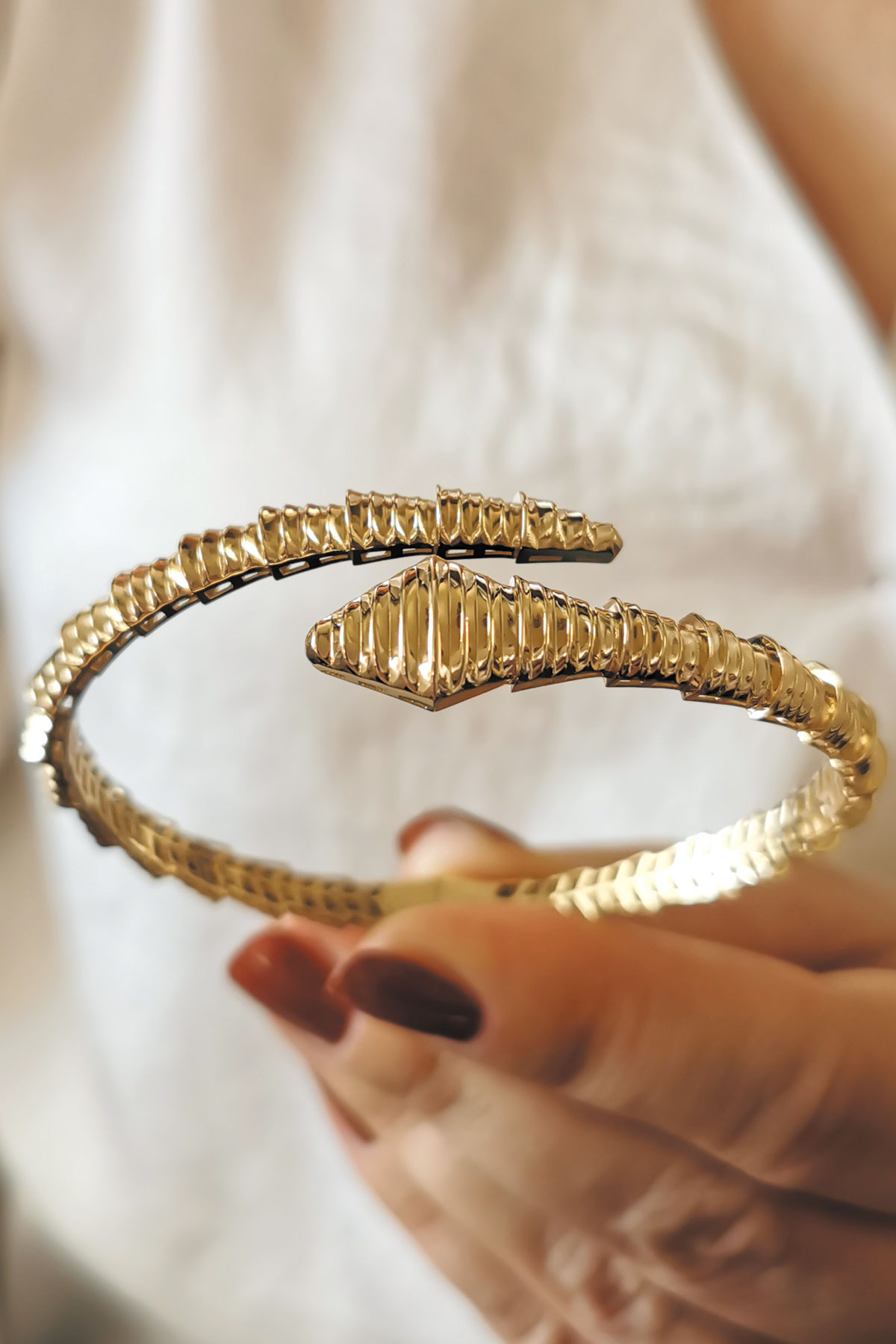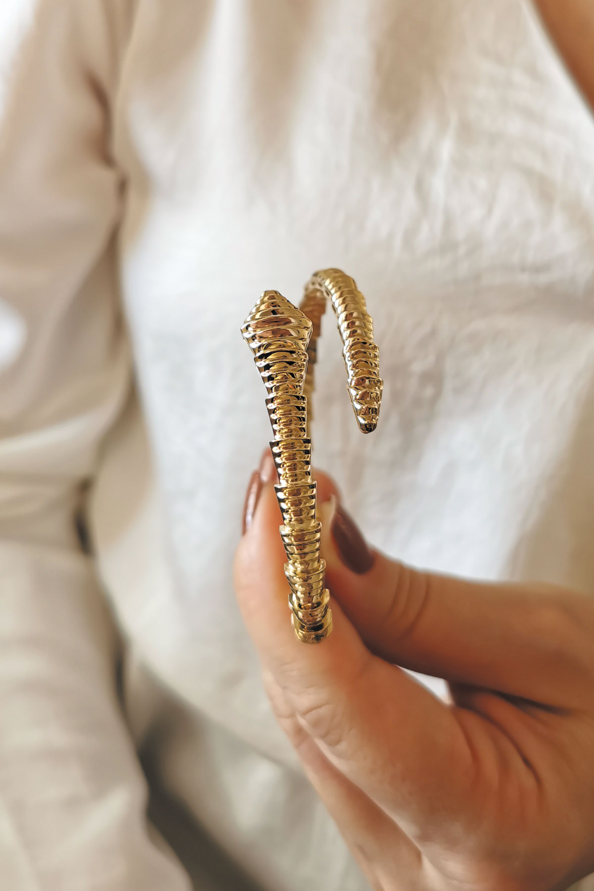 14 Ayar 12.00 gr.  Ağırlığında Şıkr Ve Modern Bir Duruşa Sahip, Günlük Kullanıma Uygun Altın Füzyon Yılan Bilezik.