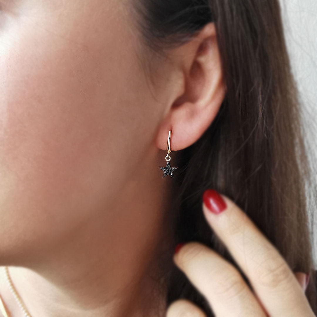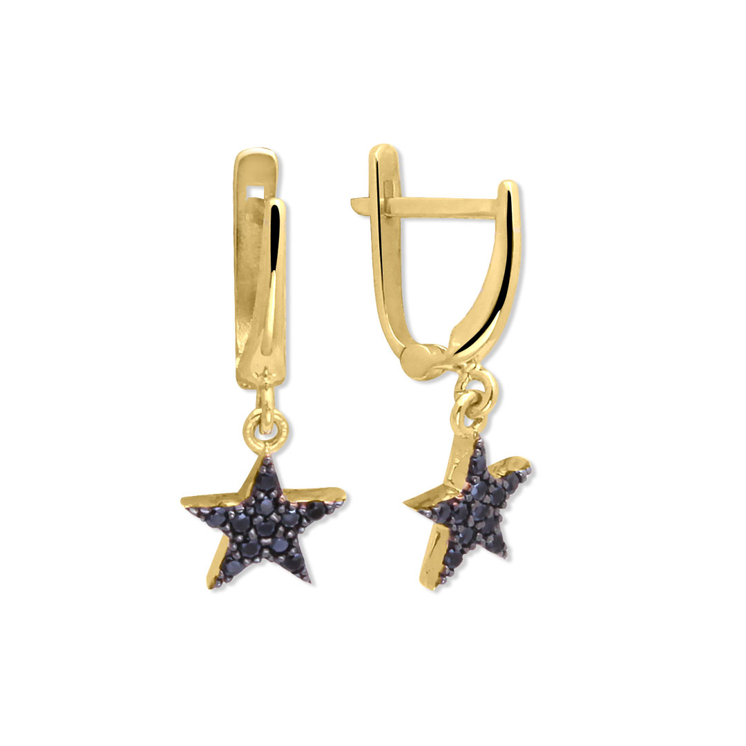 2.15 Gram Ağırlığında 2.4 Cm Boyunda Siyah Yıldız Model 14 Ayar Altın Klipsli Spor Küpe.