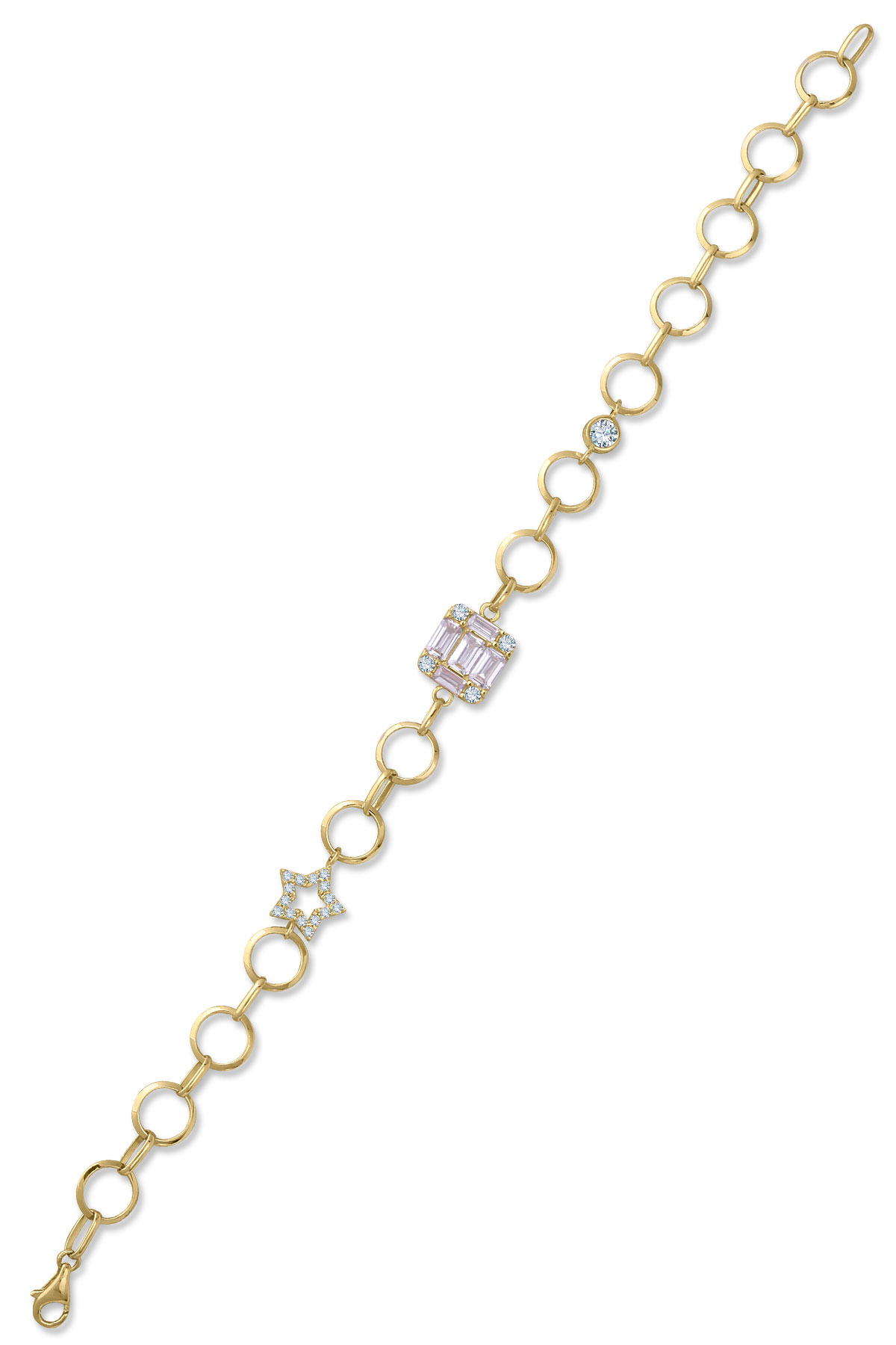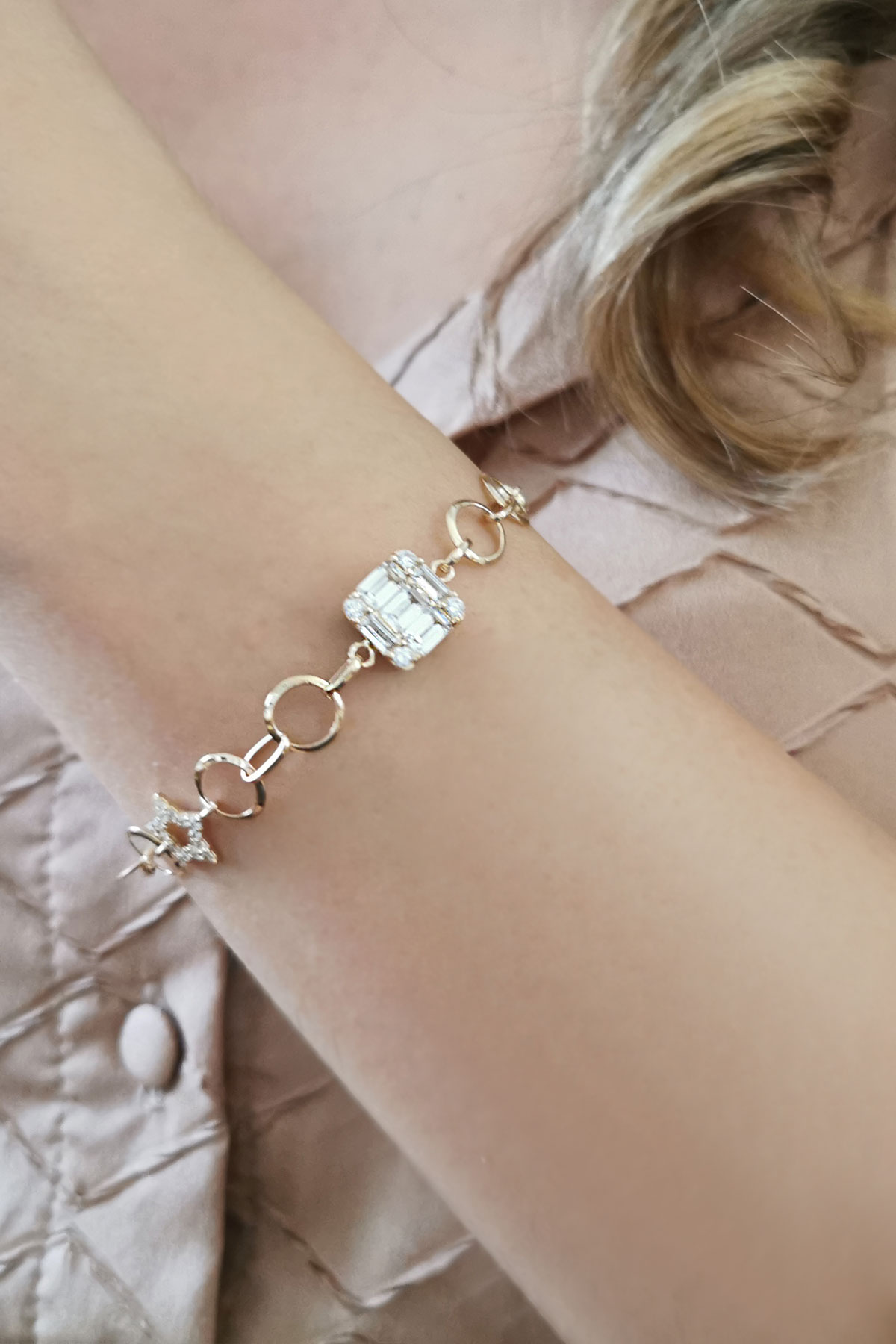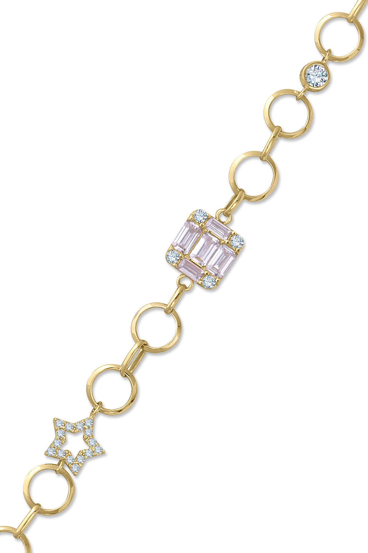 Işıl ışıl modele sahip 4.60 gr ağırlığında 18.5 cm boyunda yıldız detaylı baget taşlı zarif, spor modeliyle sevdiklerinize özel günlerinde hediye olarak tercih edebileceğiniz 14 ayar altın bileklik.