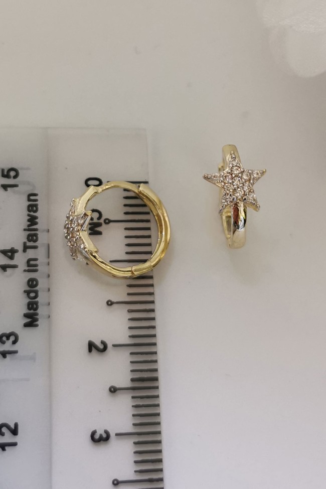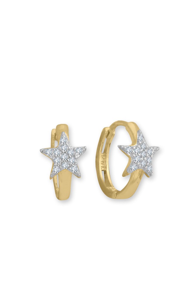 1 Cm boyunda zirkon taş detaylı ışıl ışıl 14 ayar 1.50 gr ağırlığında altın halka taşlı yıldız model çocuk küpesi.