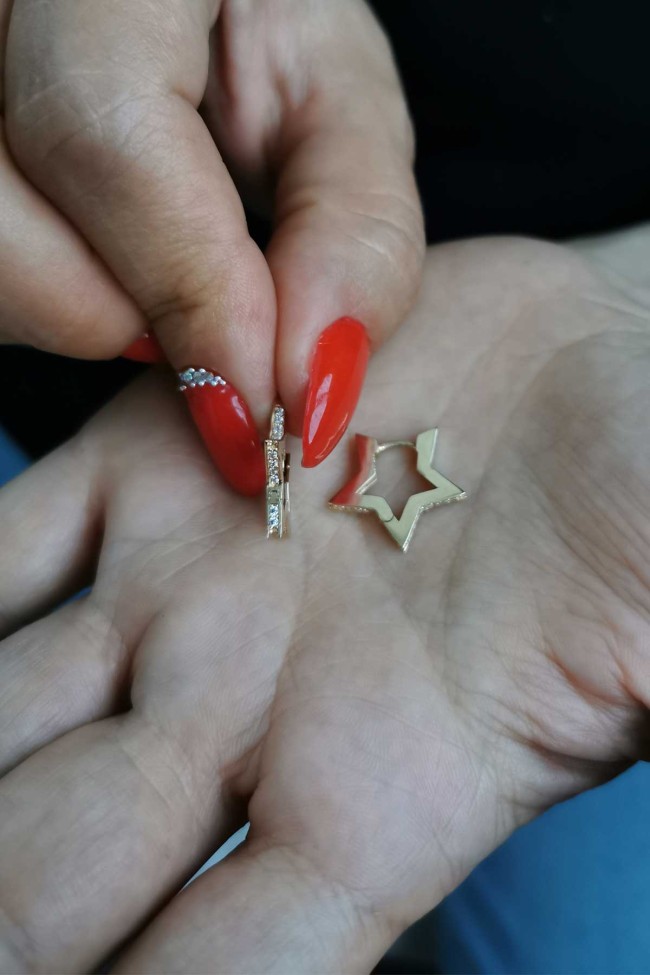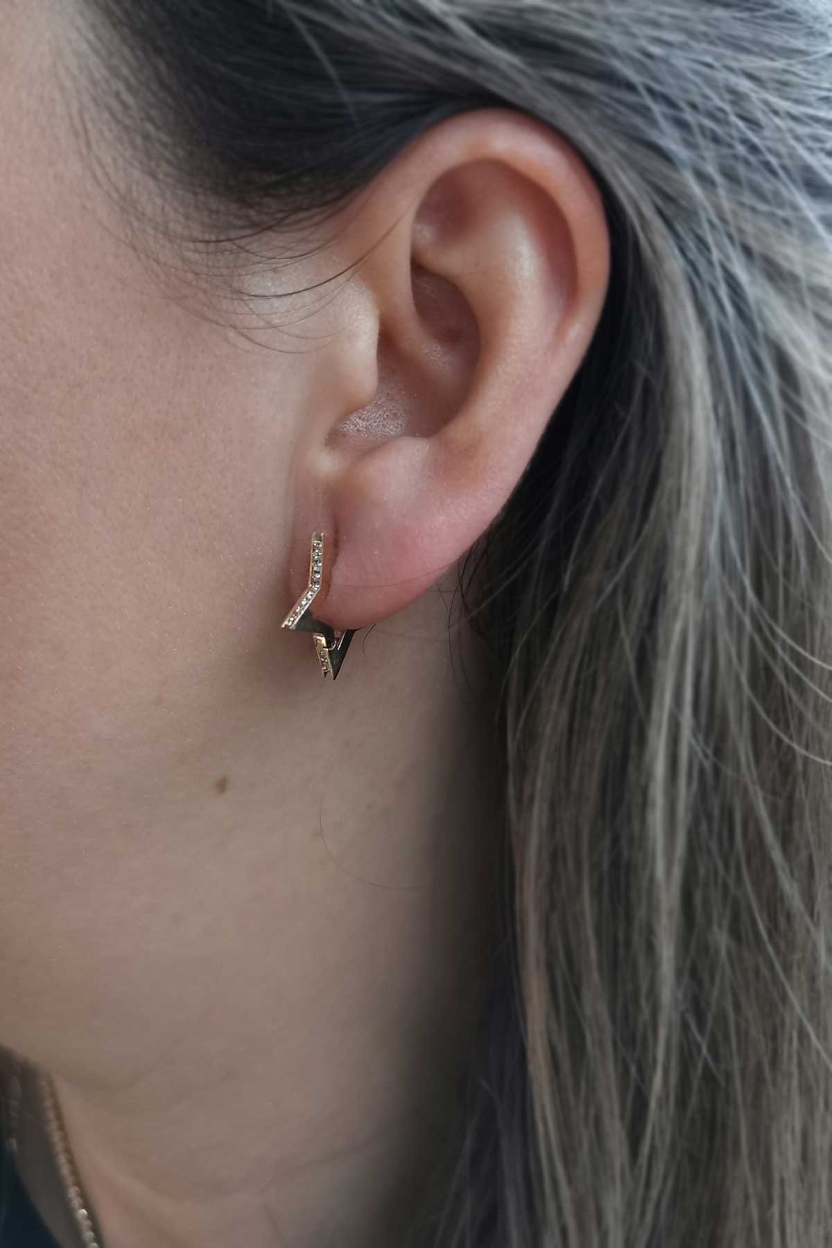 14 Ayar 2 Cm Boyunda, 3.40 Gr Ağırlığında Spor Bir Duruşa Sahip, Günlük Kullanıma Uygun Altın Taşlı Yıldız Küpe.