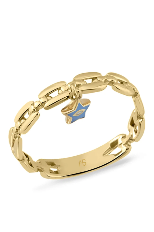 1.75 Gram Ağırlığında Sade Tasarımlı Modern, Spor Bir Tarzı Olan Günlük Kullanıma Uygun 14 Ayar Altın Yıldız Sallantılı Zincir Yüzük.