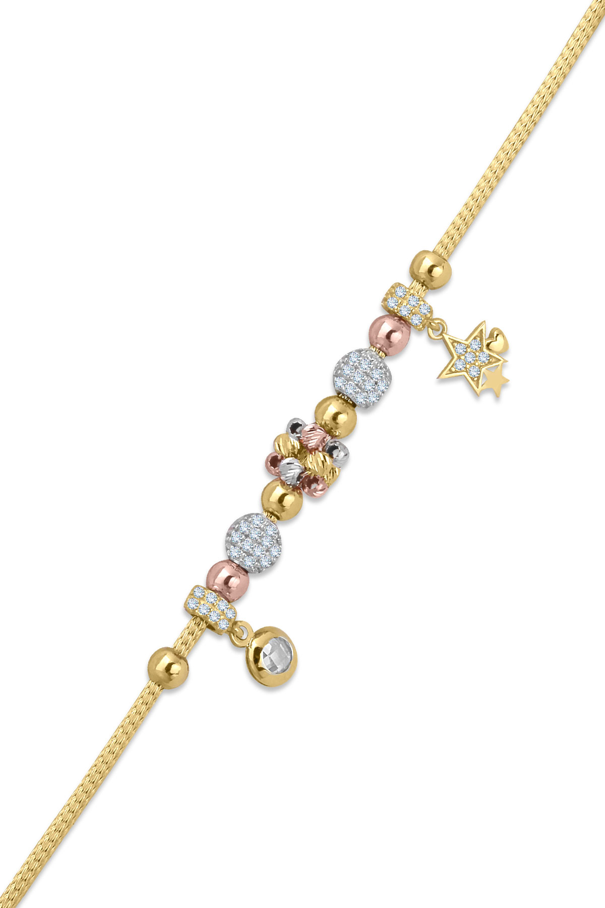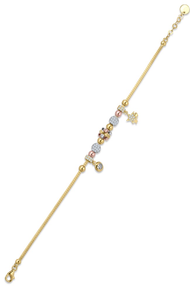 Modern, Gösterişli Ve Günlük Kullanıma Uygun Yıldız ve Tektaş Tasarım 18.5 Cm Boyunda Işıl Işıl 5.70 Gr. Ağırlığında Charm 14 Ayar Altın Bileklik.