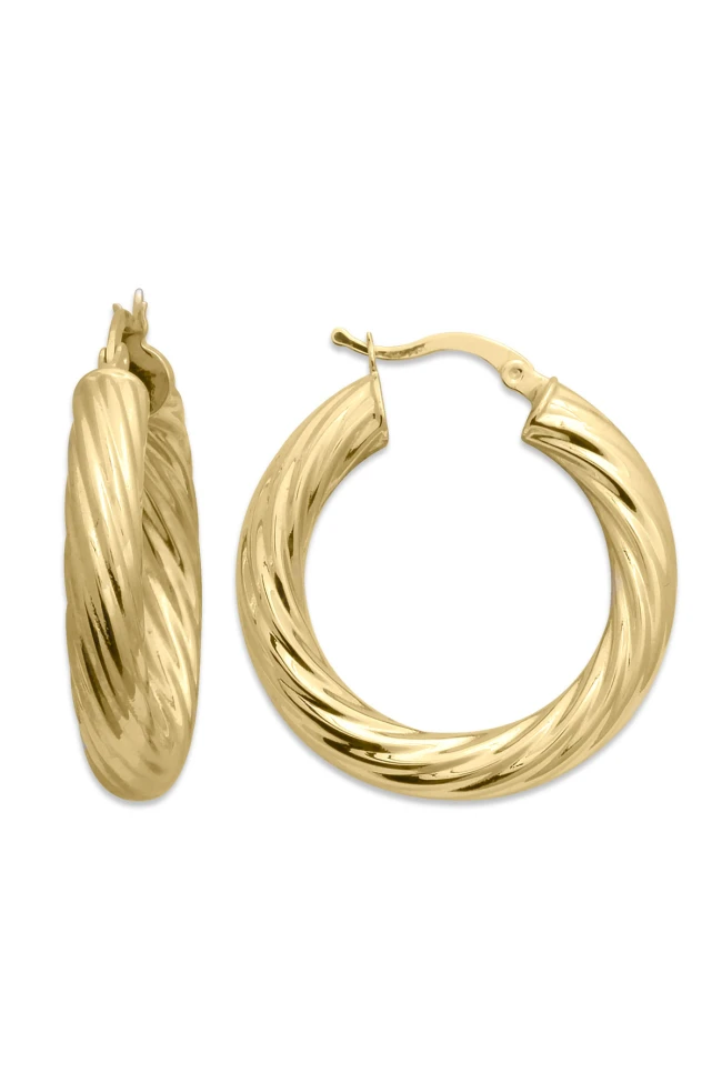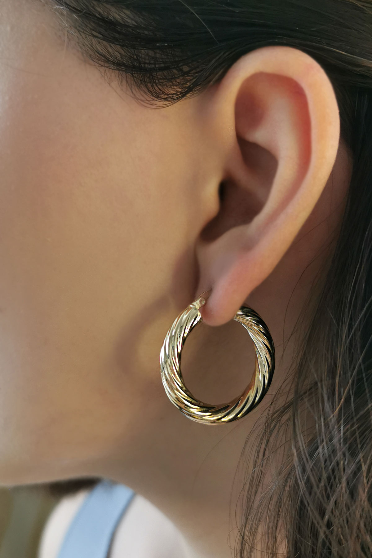 Gösterişli Tasarımıyla Göz Alıcı 4.95 Gram Ağırlığında 3 Cm Boyunda Işıltılı 14 Ayar Altın Yol Burgu Kalın Bombeli Halka Küpe.