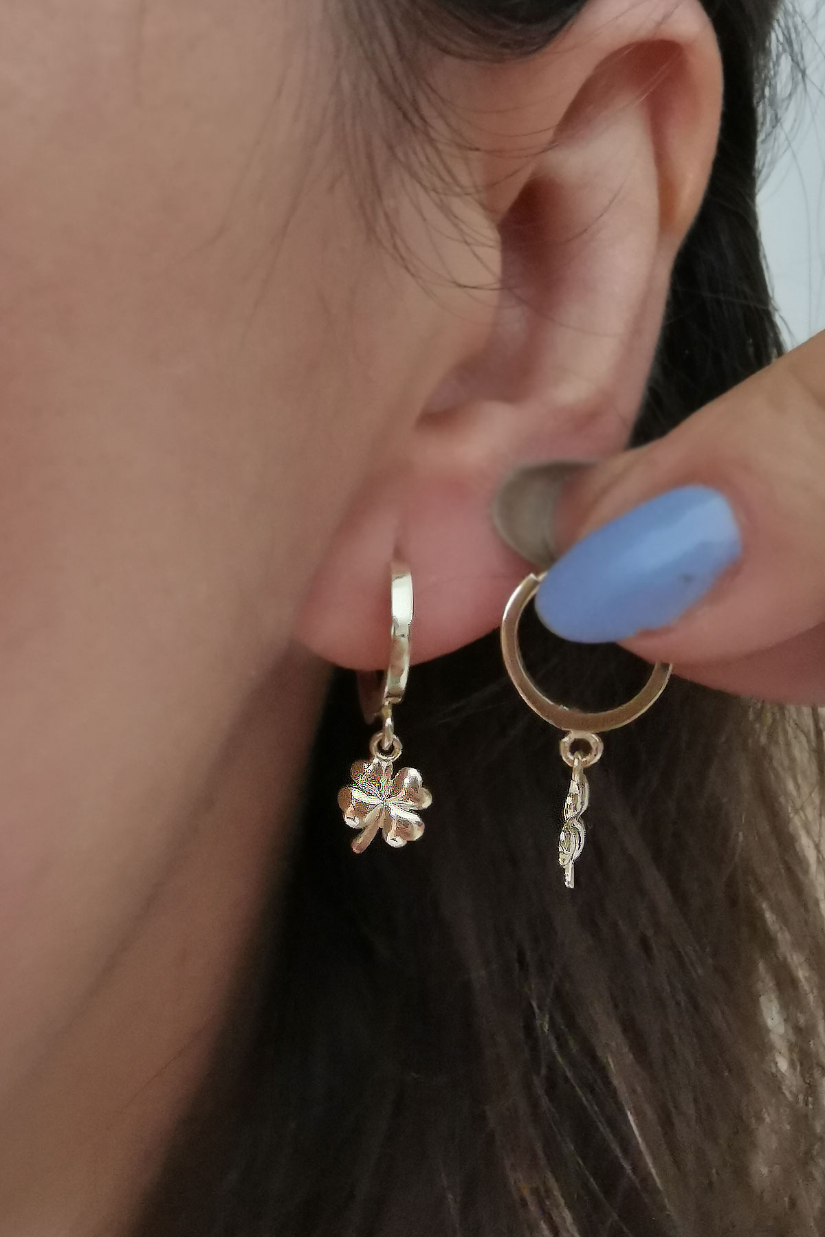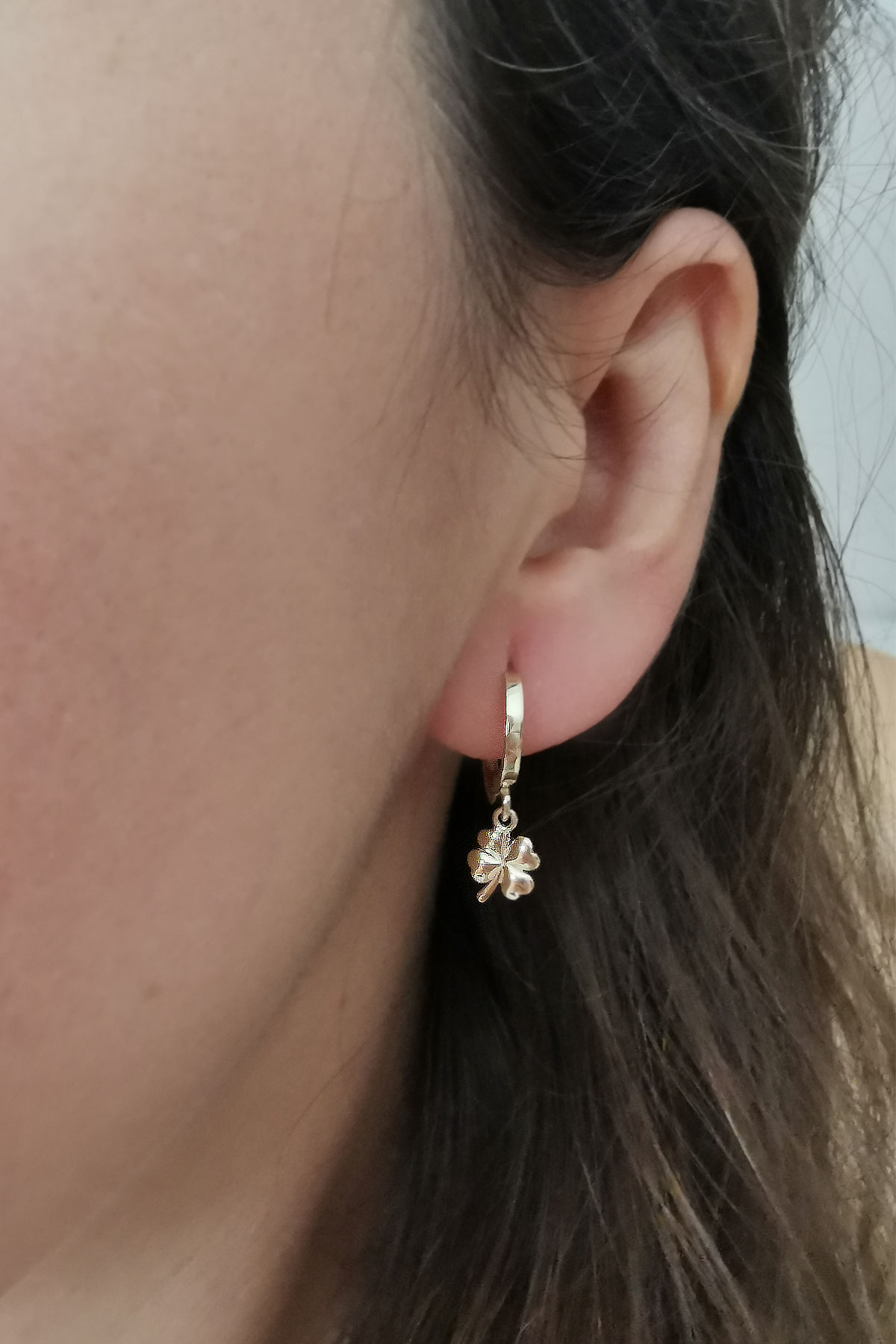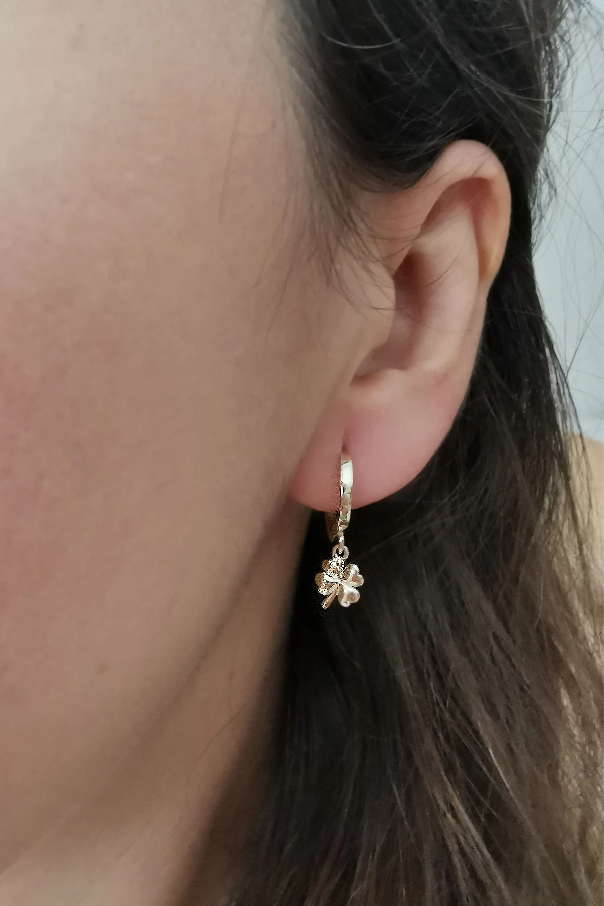 Yonca model günlük olarak kullanıma uygun 14 ayar 2.50 gr ağırlığında altın halka klipsli küpe.