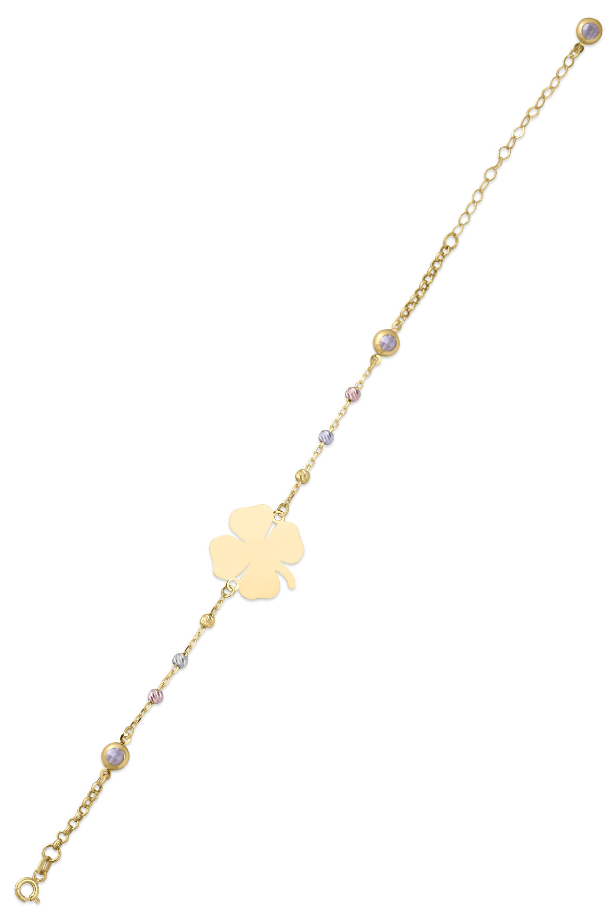 3.35 Gram Ağırlığında 20 Cm Spor Ve Şans Yoncası Tasarımlı Dorika Top Detay Zinciriyle Tüm Gün Severek Kullanacağınız 14 Ayar Altın Bileklik.