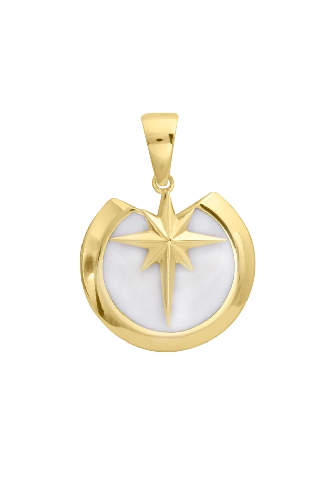 14 Ayar altın 4.00 gram ağırlığında şık ve gündelik kullanıma uygun sedefli beyaz mine detaylı 2.8 cm boyunda yıldız tasarım altın kolye ucu.