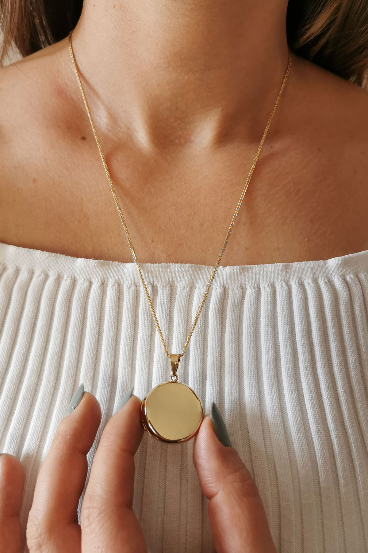 14 Ayar altın 8.10 gram ağırlığında şık ve gündelik kullanıma uygun 3.5 cm iadeal boy düz yuvarlak madalyon kolye.