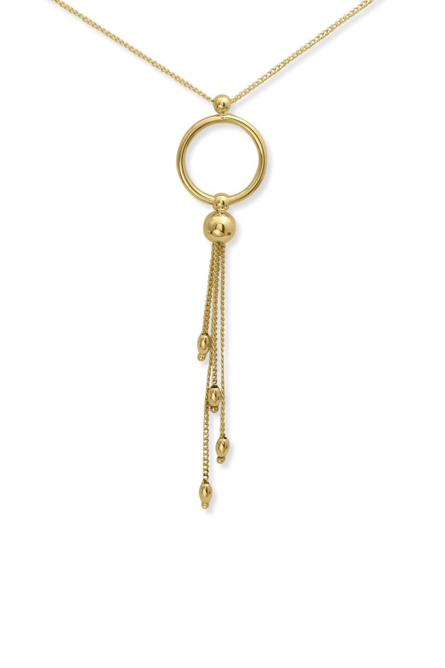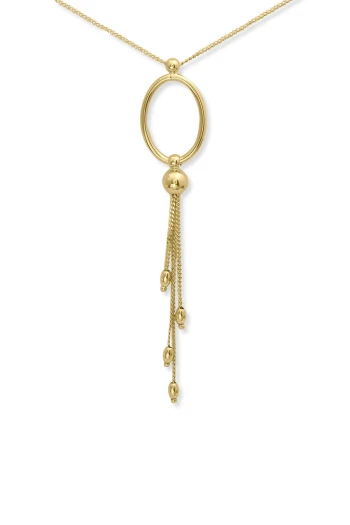 6.40 Gram Ağırlığında 45 Cm Spor Ve Modern Yuvarlak Çemberden Sallanan Püskül Detaylı Şık Bir Tarzı Olan Gösterişli 14 Ayar Altın Tasarım İtalyan Kolye.