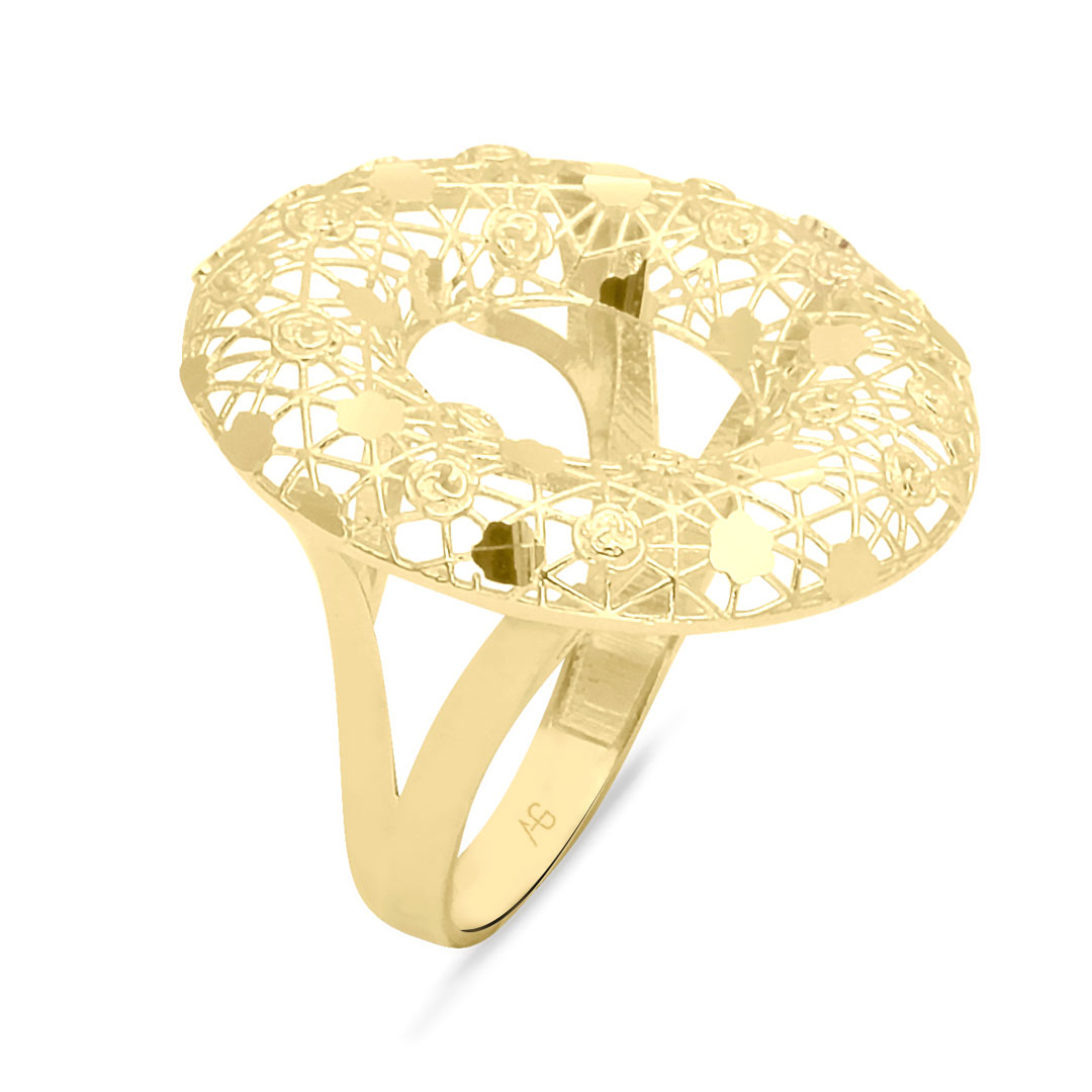 Yuvarlak model 14 ayar taşsız motif detaylı italyan tasarım altın yüzük.