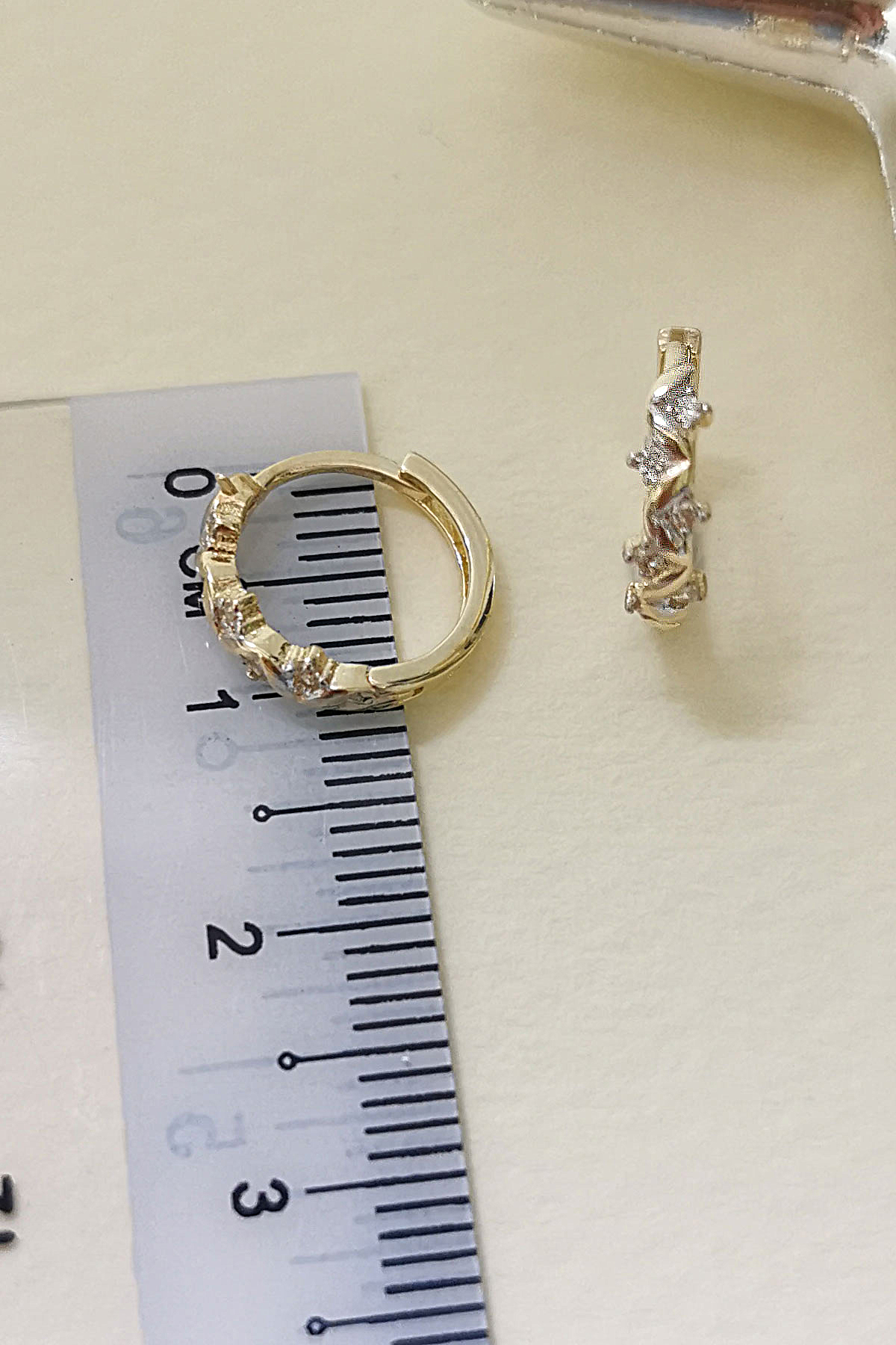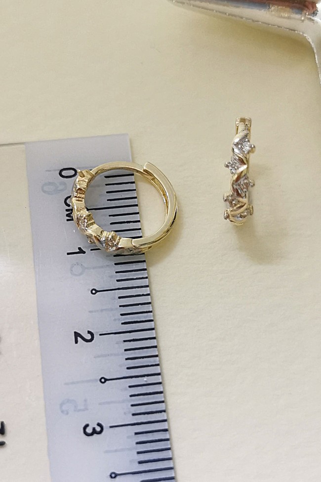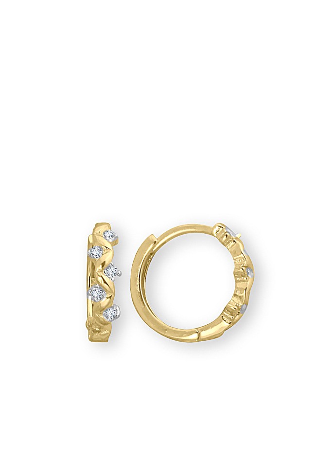 Zarif tasarımıyla 1.2 Cm boyunda günlük olarak kullanıma uygun zigzag taşlı model 14 ayar 1.30 gr ağırlığında altın klipsli halka çocuk küpesi.