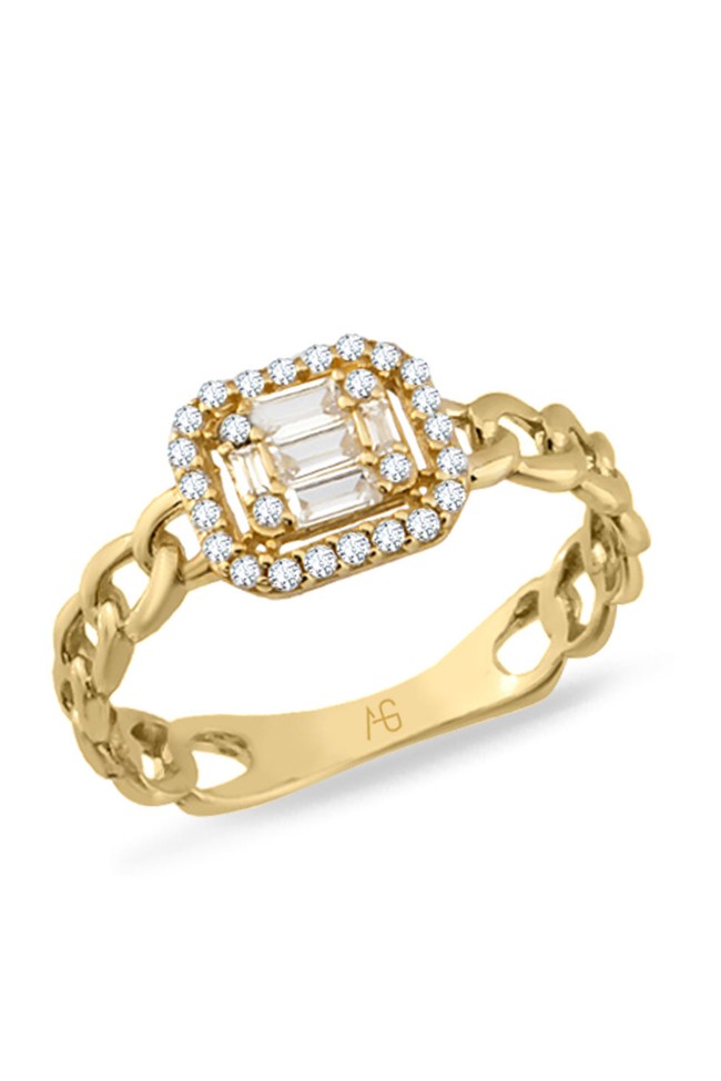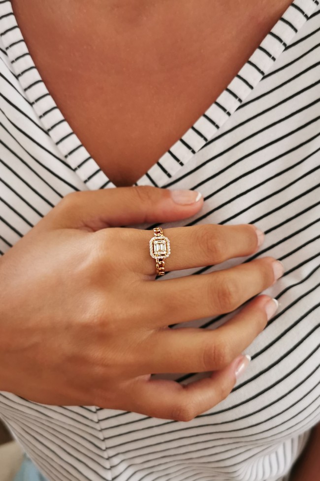 2.05 Gram Ağırlığında Şık Ve Modern Bir Tarzı Olan Günlük Kullanıma Uygun 14 Ayar Altın Baget Taşlı Zincir Kol Yüzük.