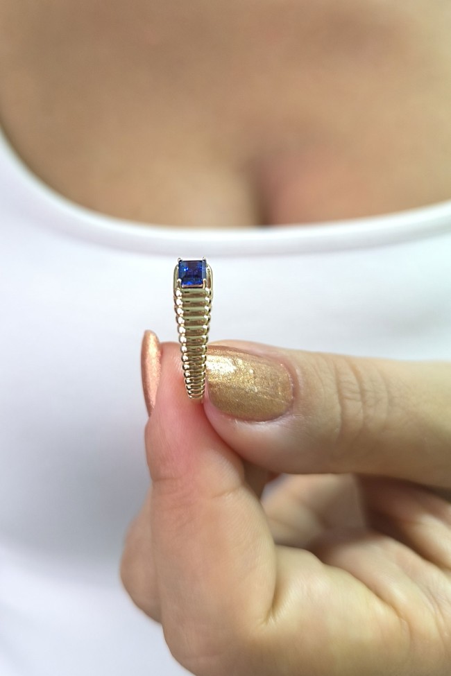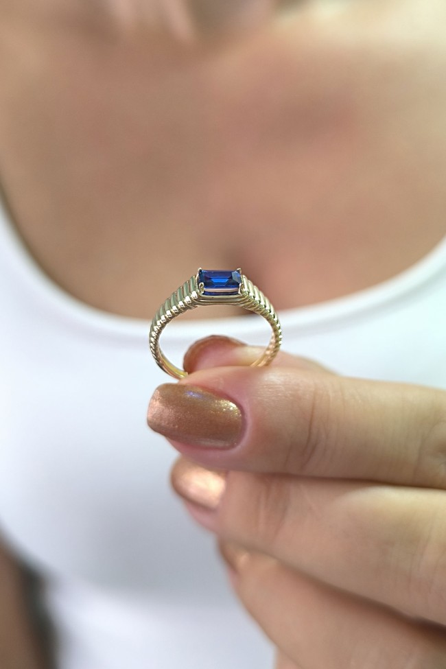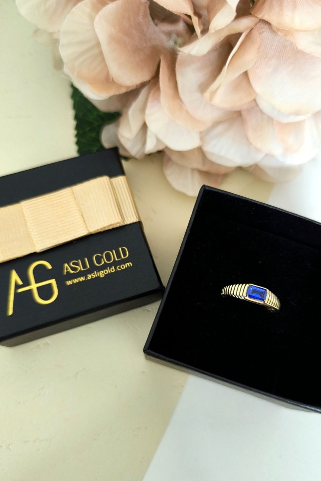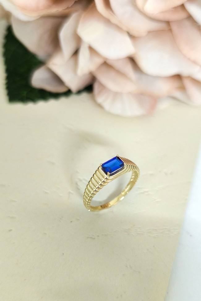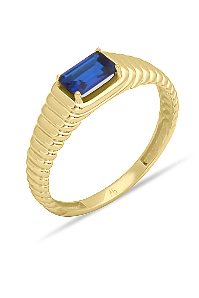 14 ayar sarı altın sade tasarımıyla günlük kullanıma uygun parmağınızda stilinize hava katacak 2.05 gram ağırlığında zirkon safir baget taşlı modern tasarım midye yüzük.