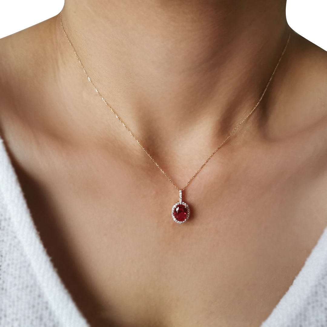 45 Cm zincirli 2.10 gr. 2 cm boyutunda oval zirkon yakut taşlı ışıl ışıl duruşa sahip şık model 14 ayar altın kolye.
